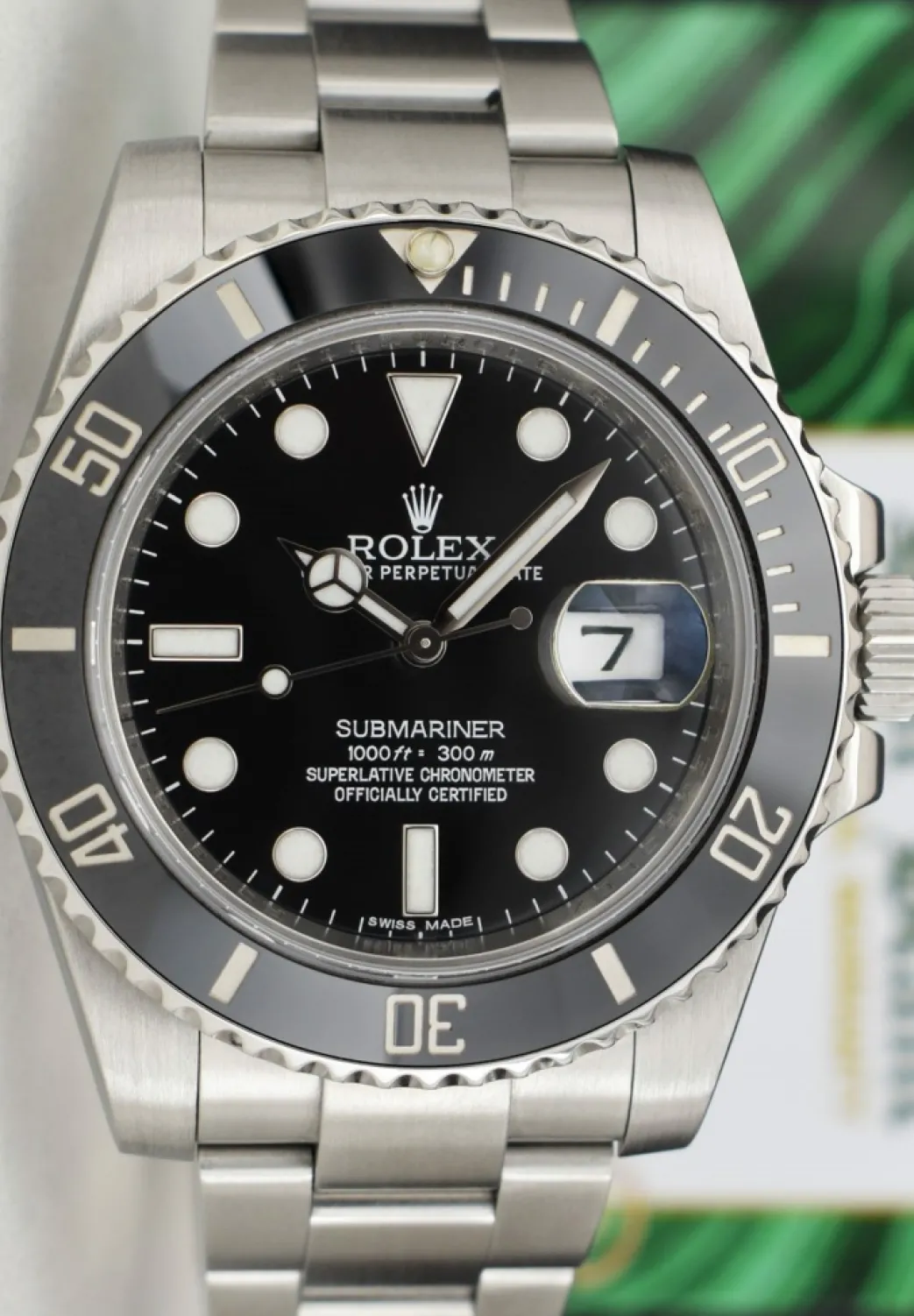 Bezel pearl does have a crack. Absolutely stunning brilliant Rolex Black Index Dial with black ceramic bezel! This is the 40mm size Stainless Steel Rolex Submariner model 116610LN: This is the style with the Rolex Stainless Oyster bracelet. This Rolex is in pristine condition…Priced to sell immediately!