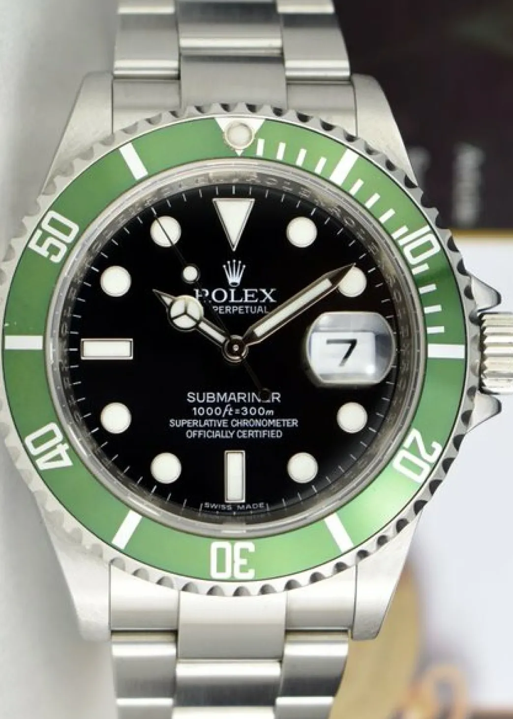 Diving Professional Watches | Sant Blanc ROLEX Rehaut 40mm Stainless Steel Submariner Green Bezel Kermit Model 16610