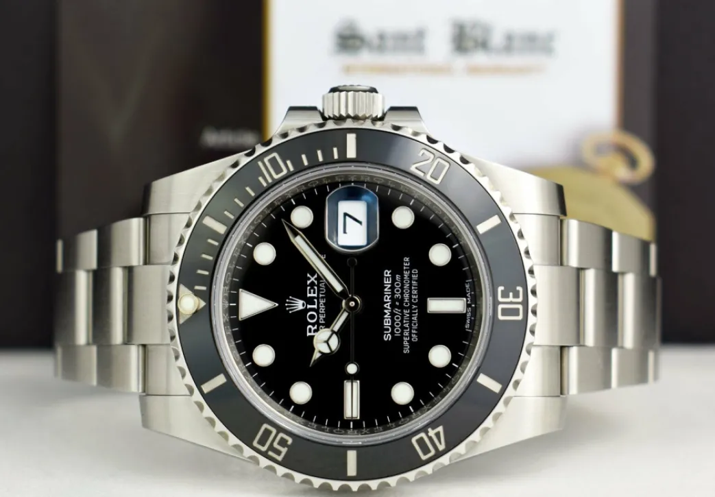 Comes with genuine Rolex presentation boxes, Rolex books, Rolex tag, Retail Appraisal and The Sant Blanc Three Year Warranty!…In pristine condition…The Perfect Gift!