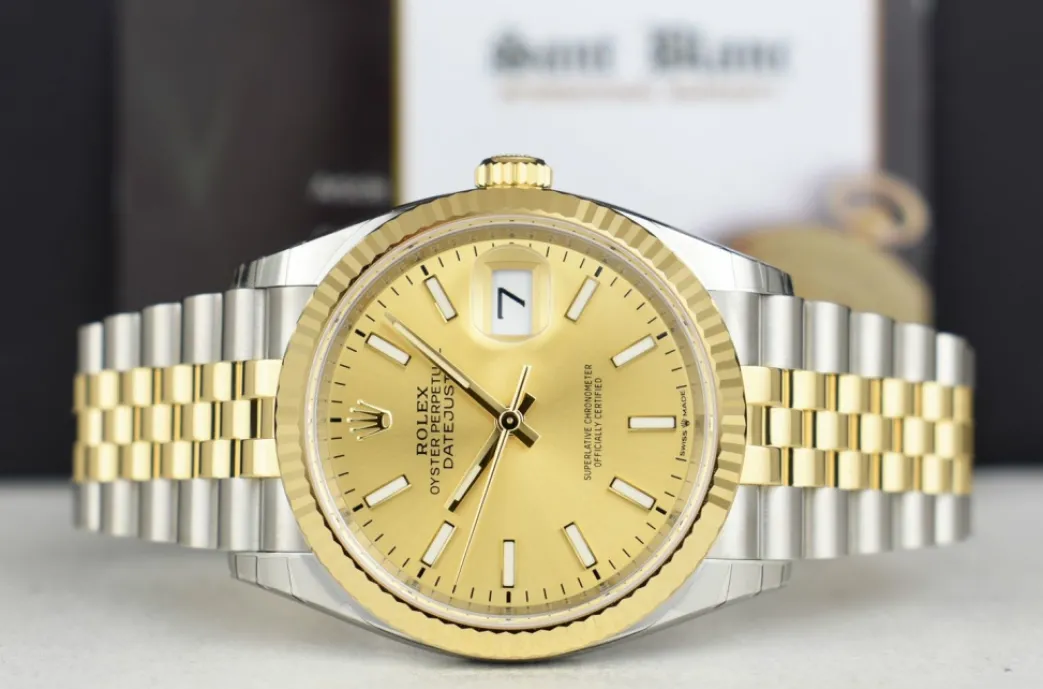 Dress Watches | Sant Blanc ROLEX 18kt Gold & Stainless Steel Datejust 36 Champagne Index Dial with Card Model 126233