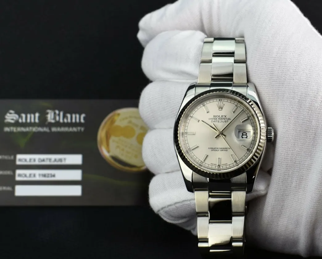 This Rolex is authentic and stunning. Unconditionally guaranteed to be authentic Rolex. SANT BLANC is a Swiss watch and timepiece specialist and not a Rolex dealer and have no affiliation with Rolex Watch USA. This Rolex timepiece is unconditionally guaranteed to be authentic. We are the sole warrantors of this timepiece. For questions please contact SANT BLANC.