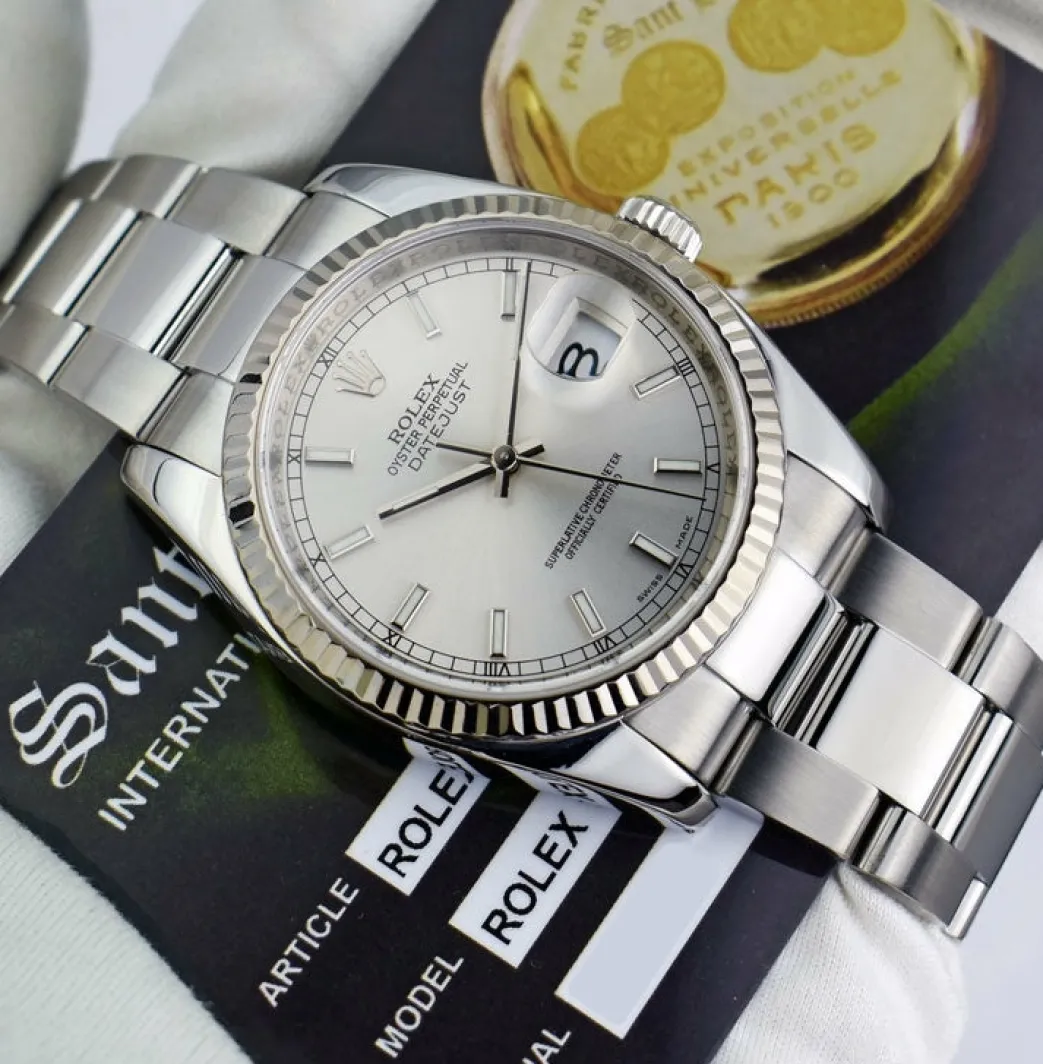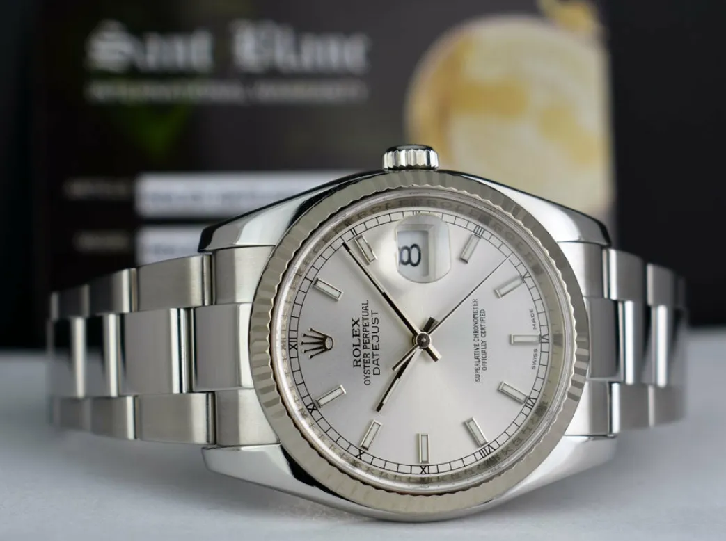 ROLEX REHAUT – This Datejust is a later model with inner bezel engraving! Absolutely Stunning brilliant Rolex Silver Index Dial! This is the 36mm size Rolex Datejust model 116234: This is the style with the Rolex Stainless Steel bracelet. This Rolex is in pristine condition…Priced to sell immediately!