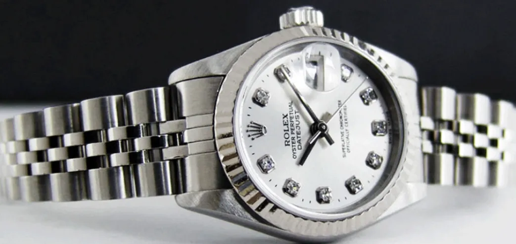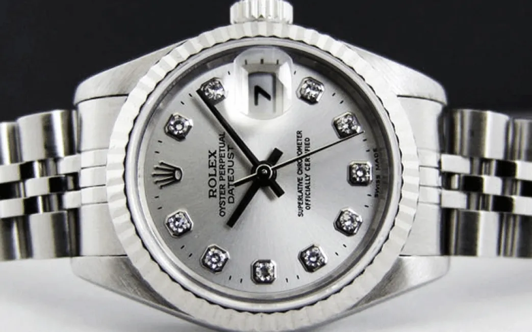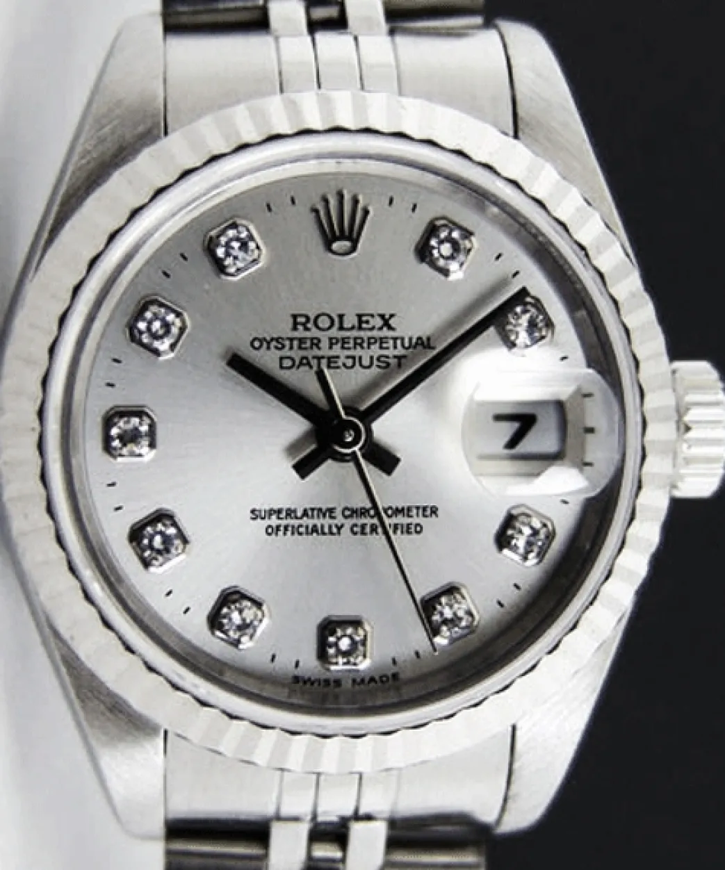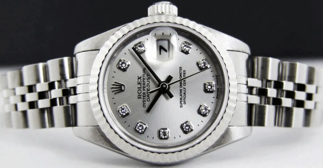 Absolutely Stunning brilliant Rolex Silver Diamond Dial! This is the Rolex Datejust model 69174 Ladies 26mm size Datejust: This is the style with Rolex Stainless bracelet. To replace this Rolex has an estimated MSRP of $9,100. This Rolex is in pristine condition…Priced to sell immediately!