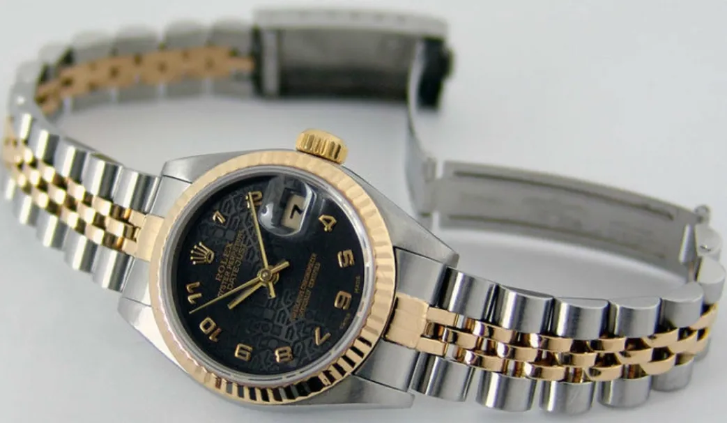 Absolutely Stunning brilliant Rolex Black Jubilee Arabic Dial! This is the Ladies 26mm size 18kt Gold & Stainless Steel Rolex Datejust model 79173: This is the style with the Rolex 18kt Gold & Stainless bracelet. To replace this Rolex has an estimated MSRP of $10,650. This Rolex is in pristine condition…Priced to sell immediately!