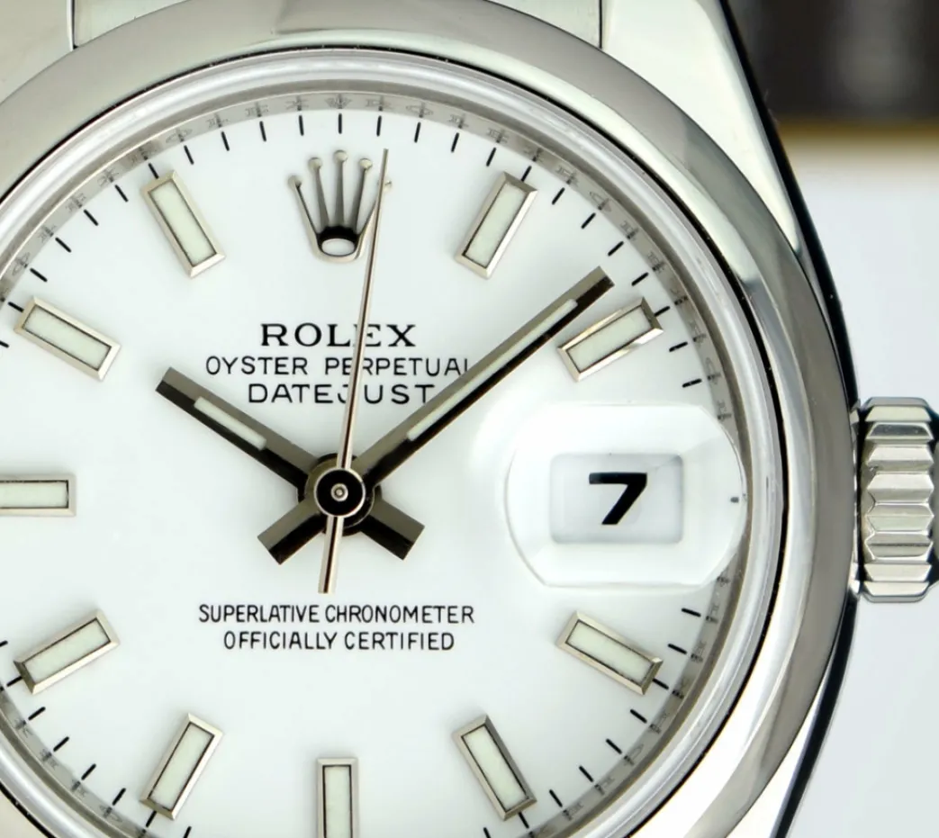 Absolutely Stunning brilliant Rolex White Index Dial! This is the Ladies 26mm size Stainless Steel Rolex Datejust model 179160: This is the style with the Rolex Stainless Steel Oyster bracelet. To replace this Rolex has an estimated MSRP of $6,100. This Rolex is in pristine condition…Priced to sell immediately!