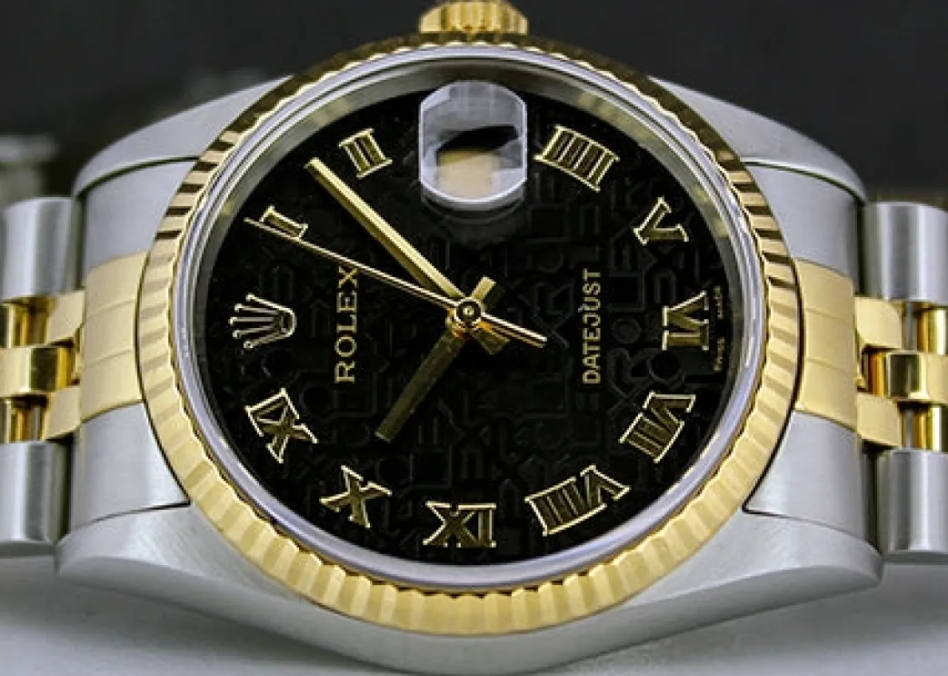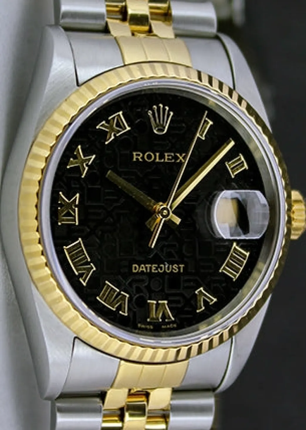 Absolutely Stunning brilliant Rolex Black Jubilee Roman Dial! This is the 36mm size 18kt Gold & Stainless Steel Rolex Datejust model 16233: This is the style with the Rolex 18kt Gold & Stainless bracelet. To replace this Rolex has an estimated MSRP of $11,700. This Rolex is in pristine condition…Priced to sell immediately!