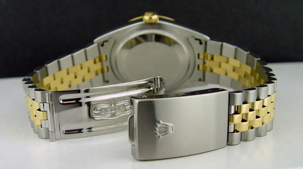 This Rolex is authentic and stunning. Unconditionally guaranteed to be authentic Rolex. Returns & exchanges accepted. Returns for refund are accepted. I have set the reserve well below the current value placed on this timepiece. SANT BLANC is a Swiss watch and timepiece specialist and not a Rolex dealer and have no affiliation with Rolex Watch USA. This Rolex timepiece is unconditionally guaranteed to be authentic. We are the sole warrantors of this timepiece. For questions please contact SANT BLANC.