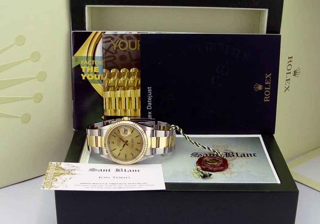 Absolutely Stunning brilliant Rolex Champagne Stick Dial! This is the 36mm size 18kt Gold & Stainless Steel Rolex Datejust model 16233: This is the style with the Rolex 18kt Gold & Stainless bracelet. To replace this Rolex has an estimated MSRP of $11,050. This Rolex is in pristine condition…Priced to sell immediately!