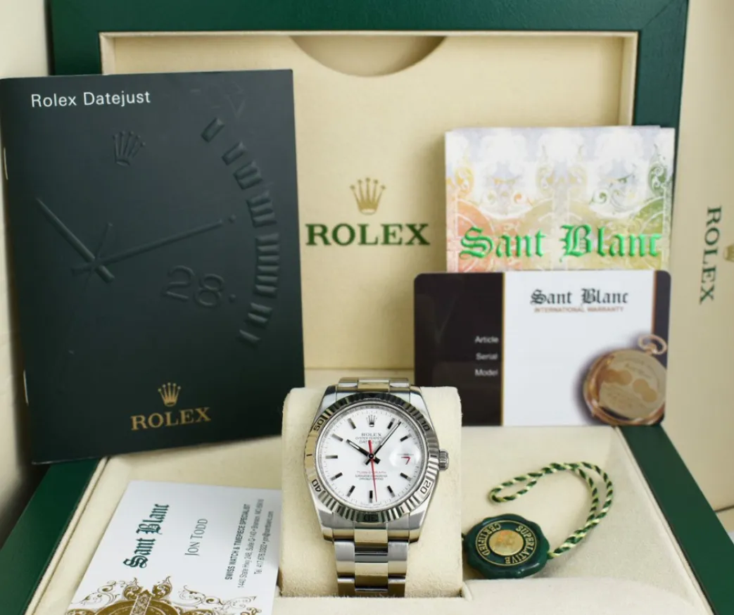 Comes with genuine Rolex presentation boxes, Rolex books, Rolex tag, Retail Appraisal and The Sant Blanc Three Year Warranty!…In pristine condition…The Perfect Gift!