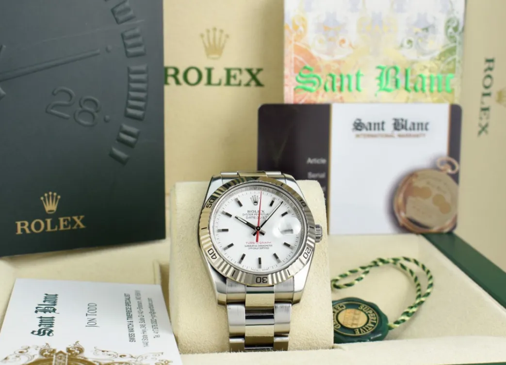 Absolutely stunning brilliant Rolex White Dial! This is the 36mm size 18kt White Gold & Stainless Steel Rolex Datejust Turn-O-Graph model 116264: This is the style with Rolex Stainless Steel bracelet. This Rolex is in pristine condition…Priced to sell immediately!