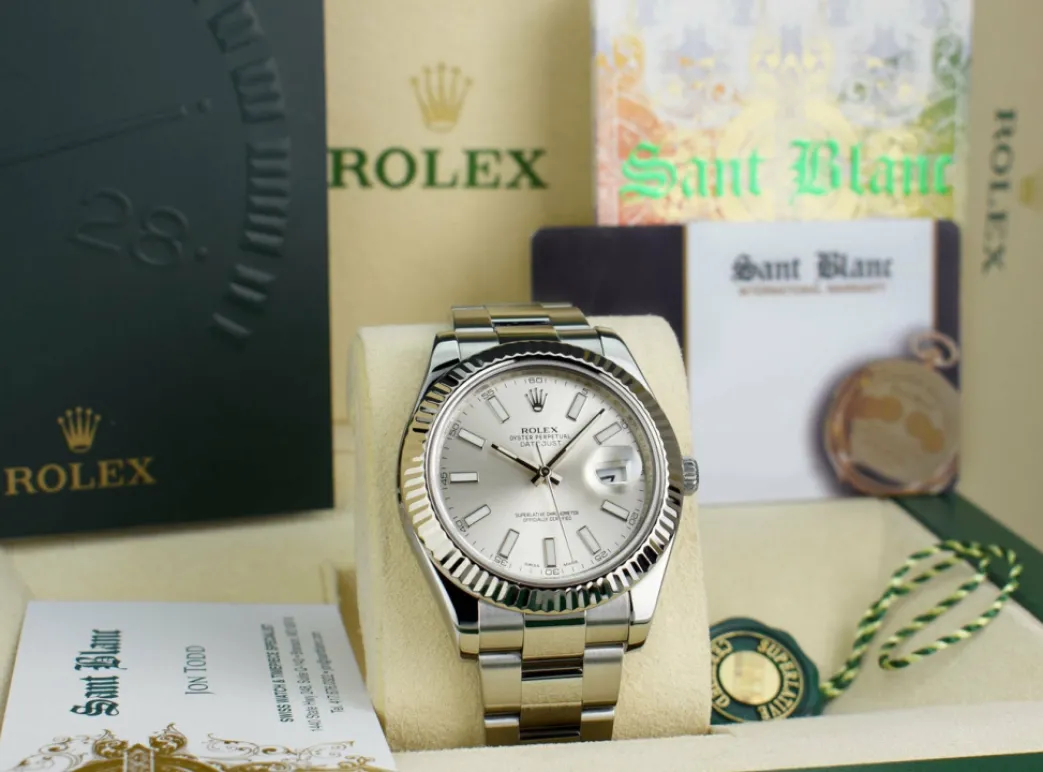 Comes with genuine Rolex presentation boxes, Rolex books, Rolex tag, Retail Appraisal and The Sant Blanc Three Year Warranty!…In pristine condition…The Perfect Gift!