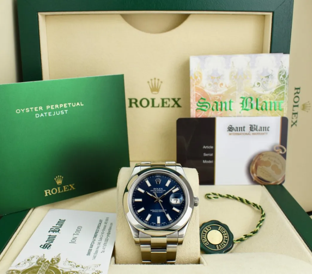 Absolutely Stunning brilliant Rolex Blue Index Dial! This is the 41mm size Stainless Steel Rolex Datejust II model 116300: This is the style with the Rolex Stainless Steel Oyster bracelet. This Rolex is in pristine condition…Priced to sell immediately!