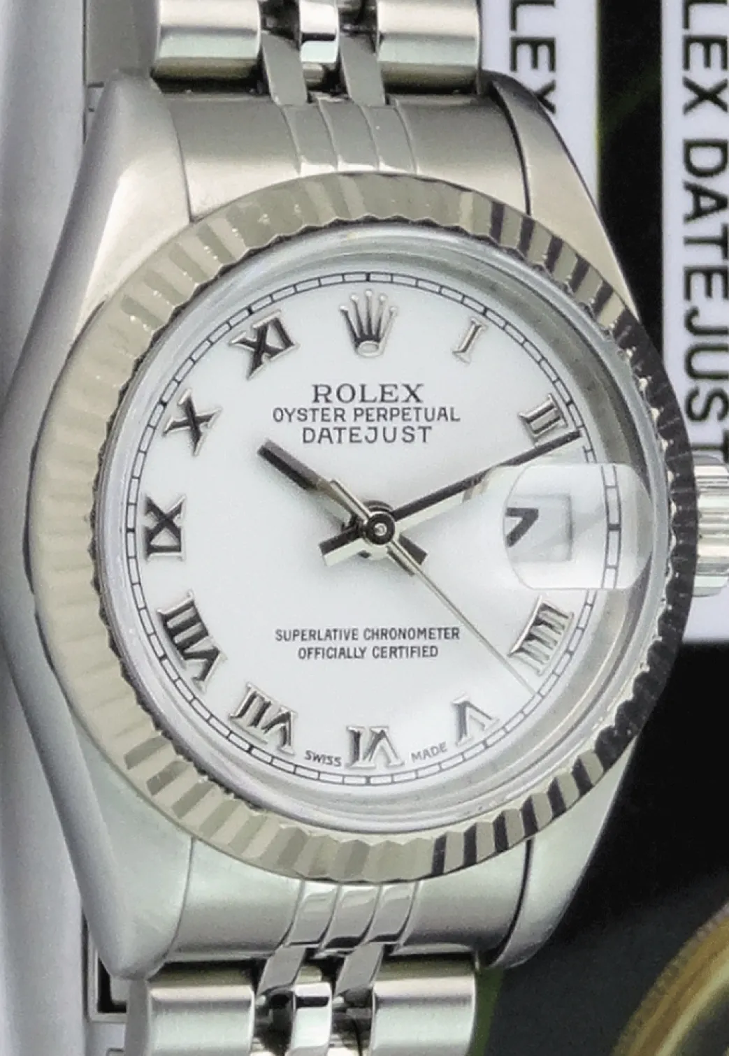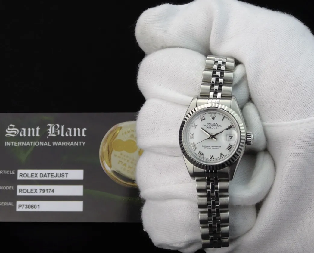 Absolutely Stunning brilliant Rolex White Roman Dial! This is the Ladies 26mm Rolex Datejust model 79174: This is the style with the Rolex Stainless Steel bracelet. To replace this Rolex has an estimated MSRP of $7,250. This Rolex is in pristine condition…Priced to sell immediately!
