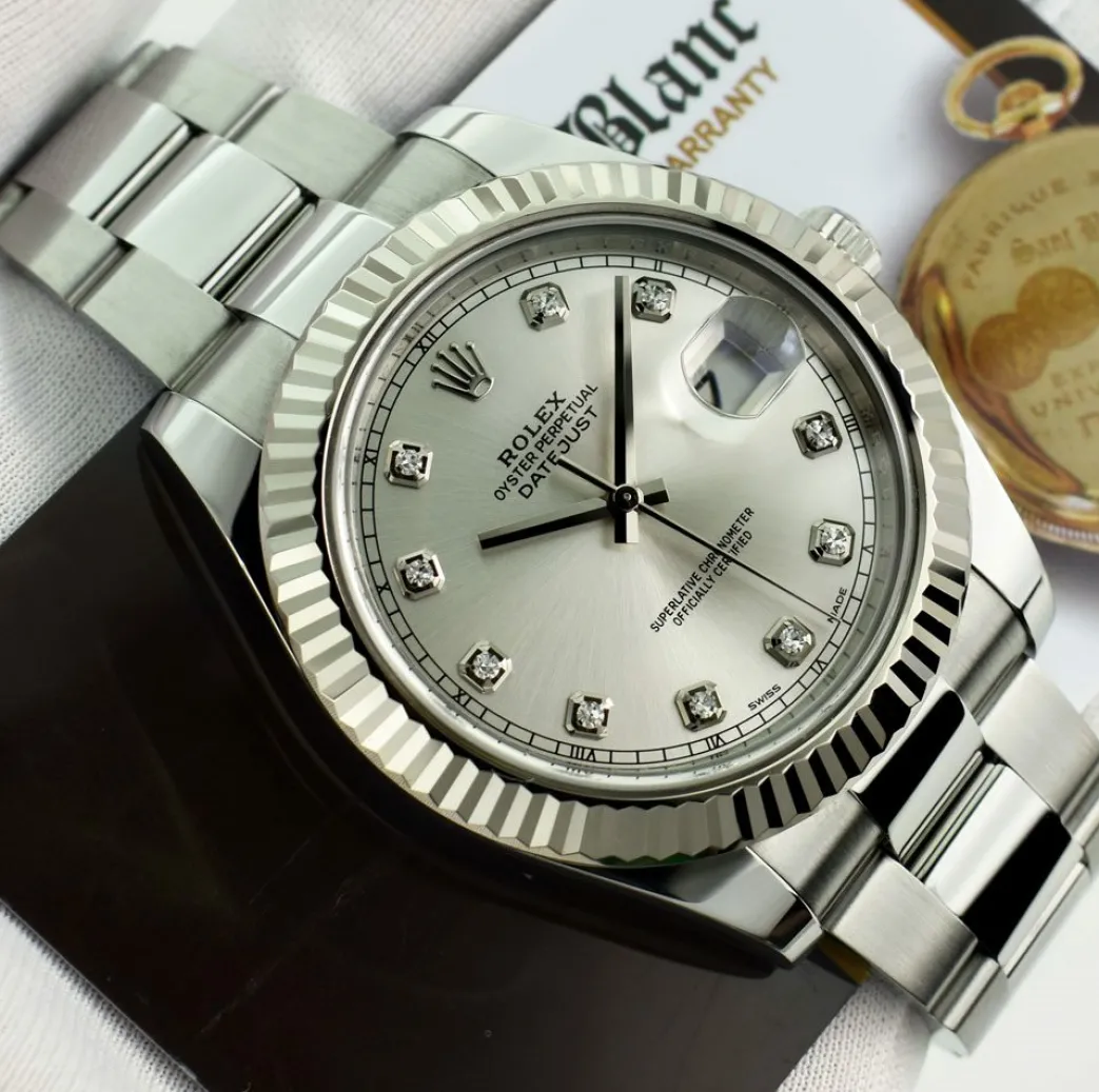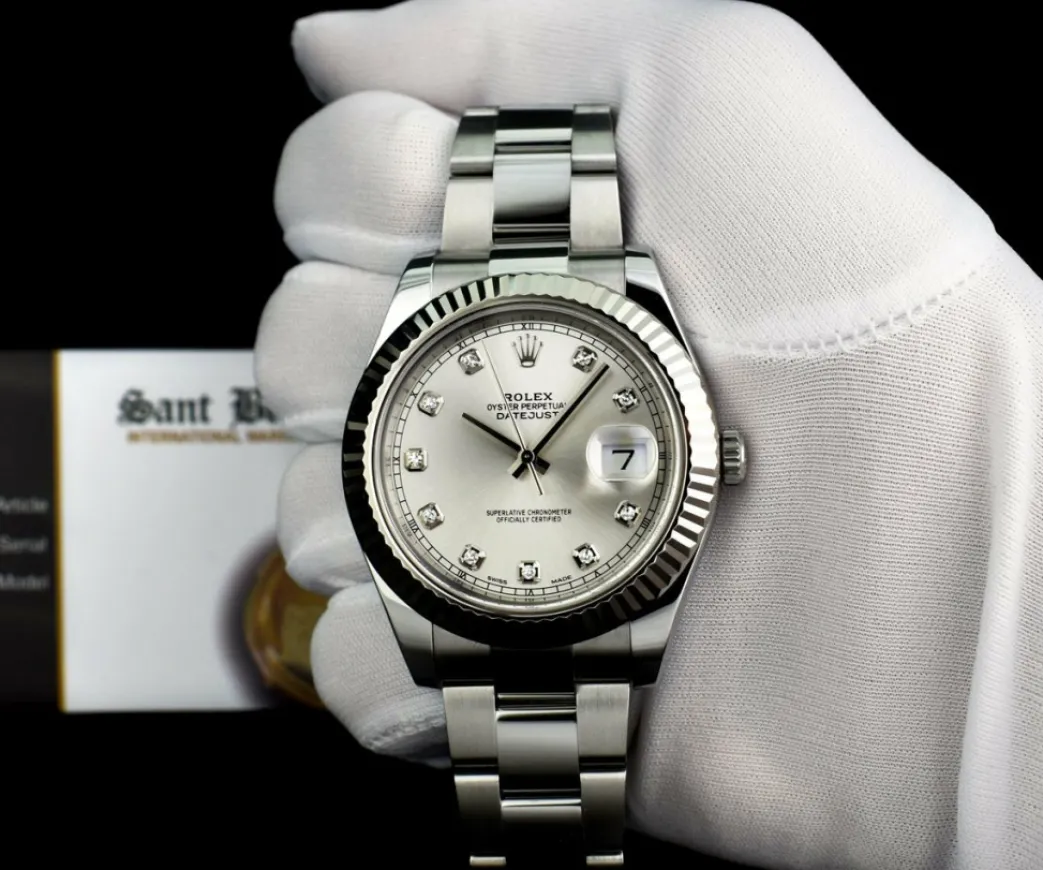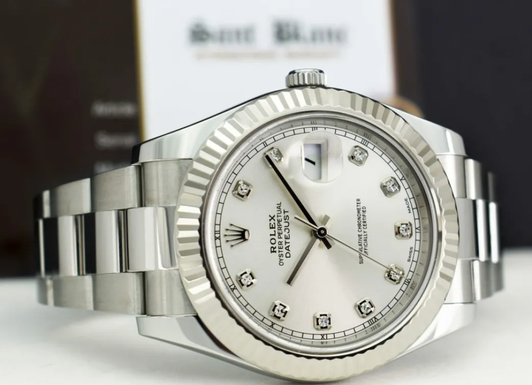 Men’s Watches | Dress Watches | Sant Blanc ROLEX Men’s 41mm 18kt White Gold & Stainless Steel DateJust II Silver Diamond Dial Model 116334