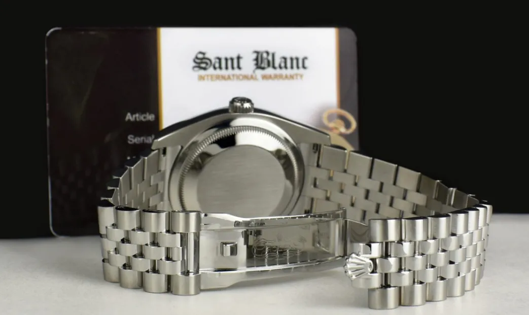 This Rolex is authentic and stunning. Unconditionally guaranteed to be authentic Rolex. Returns & exchanges accepted. Returns for refund are accepted.. I have set the reserve well below the current value placed on this timepiece. SANT BLANC is a Swiss watch and timepiece specialist and not a Rolex dealer and have no affiliation with Rolex Watch USA. This Rolex timepiece is unconditionally guaranteed to be authentic. We are the sole warrantors of this timepiece. For questions please contact SANT BLANC.