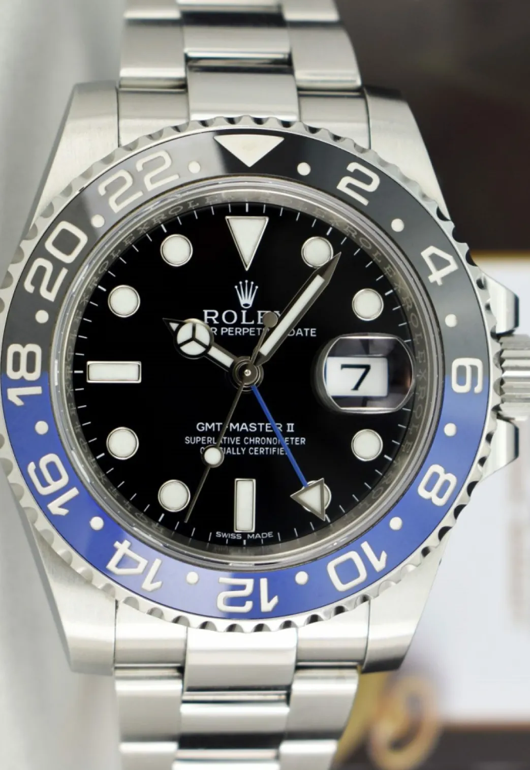 Absolutely Stunning brilliant Rolex Black Index Dial and Black & Blue Ceramic Bezel! This is the 40mm size Stainless Steel Rolex GMT Master II model 116710BLNR: This is the style with the Rolex Stainless Steel bracelet. This Rolex is in pristine condition…Priced to sell immediately!