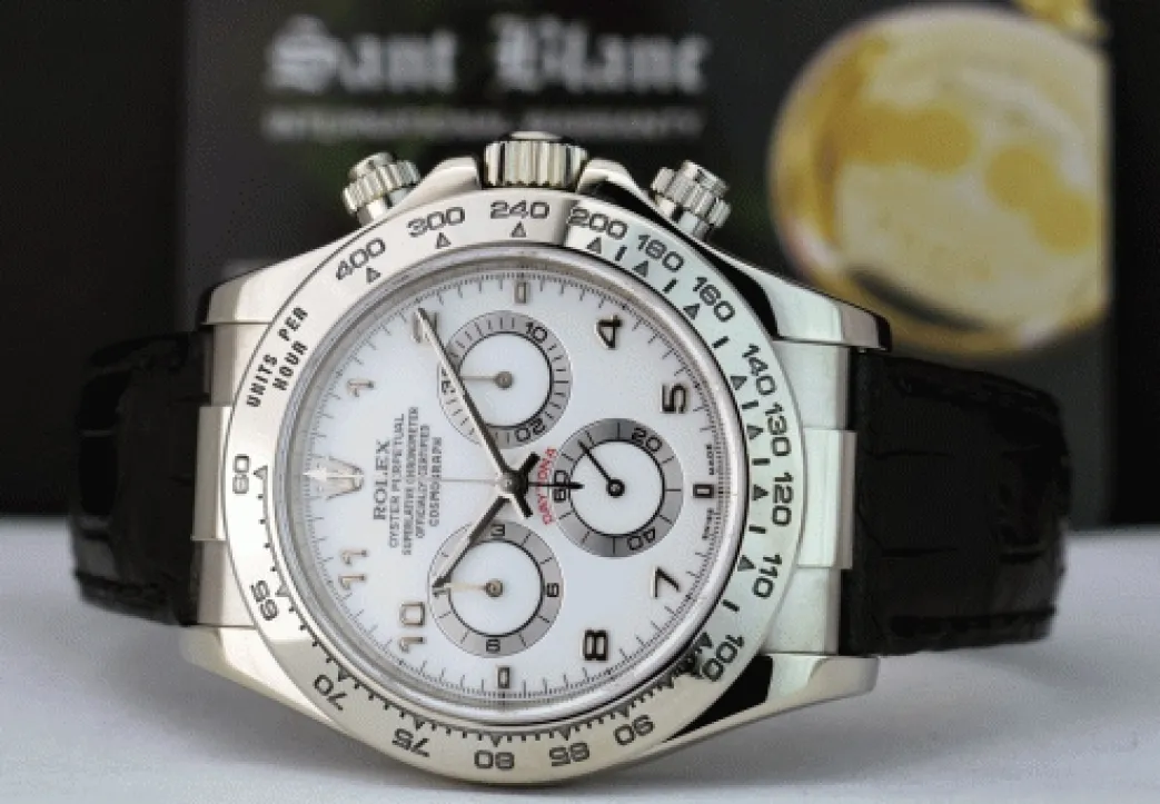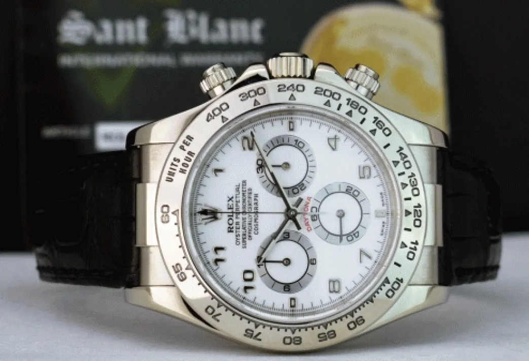 Absolutely Stunning brilliant Rolex Factory White Arabic Dial! This is the 40mm size Rolex Men’s 18kt White Gold Daytona – Rolex model 116519: This is the style with the Rolex Black Crocodile Strap. This Rolex is in pristine condition…Priced to sell immediately!
