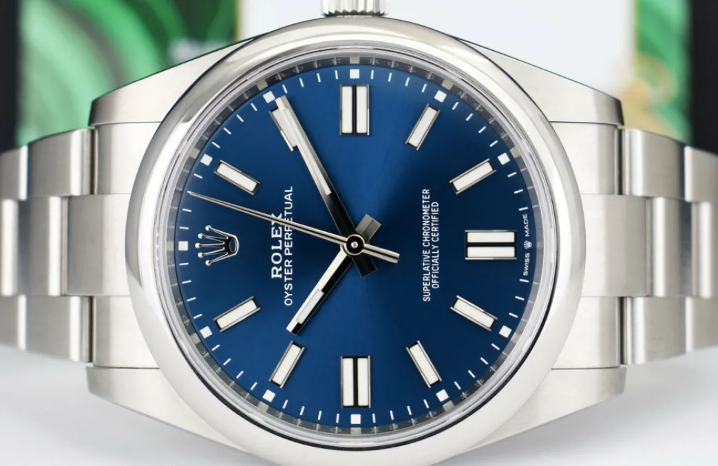 Absolutely Stunning brilliant Rolex Blue Index Dial! This is the 41mm size Stainless Steel Rolex Oyster Perpetual model 124300: This is the style with the Rolex Stainless Steel Oyster bracelet. This Rolex is in pristine condition…Priced to sell immediately!