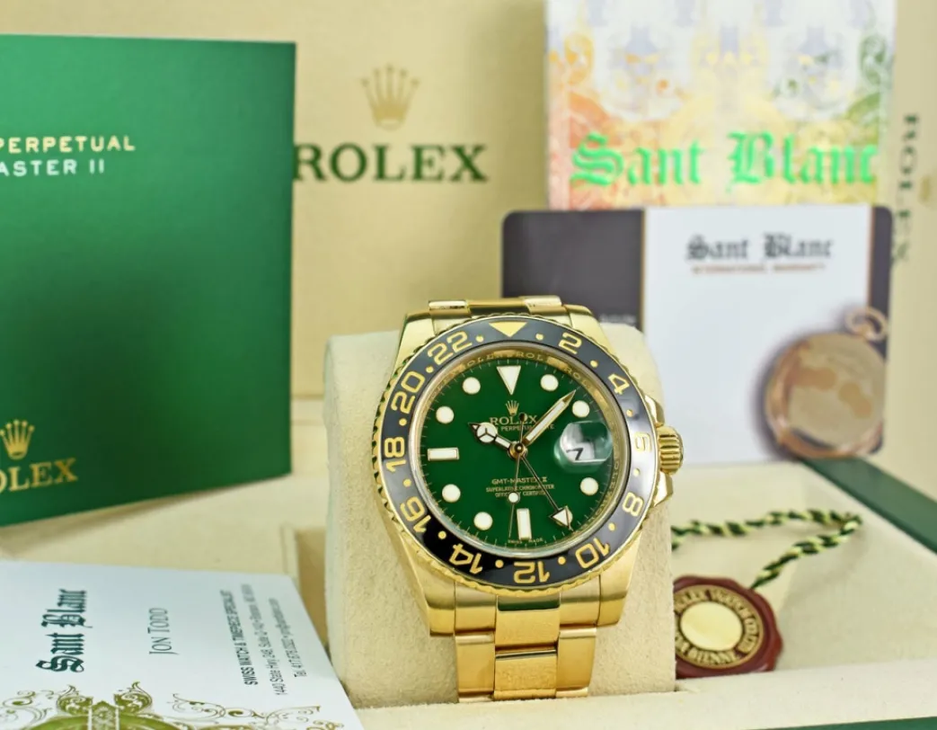 ROLEX BOX BOOKS & CARD – Comes with Original Rolex Box, Books, and Factory Rolex Card! This Absolutely Stunning brilliant Rolex Green Dial! This is the 40mm size 18kt Gold Rolex GMT Master II model 116718 with Ceramic Bezel: This is the style with the Rolex 18kt Gold bracelet. To replace this Rolex has an estimated MSRP of $33,250. This Rolex is in pristine condition…Priced to sell immediately!