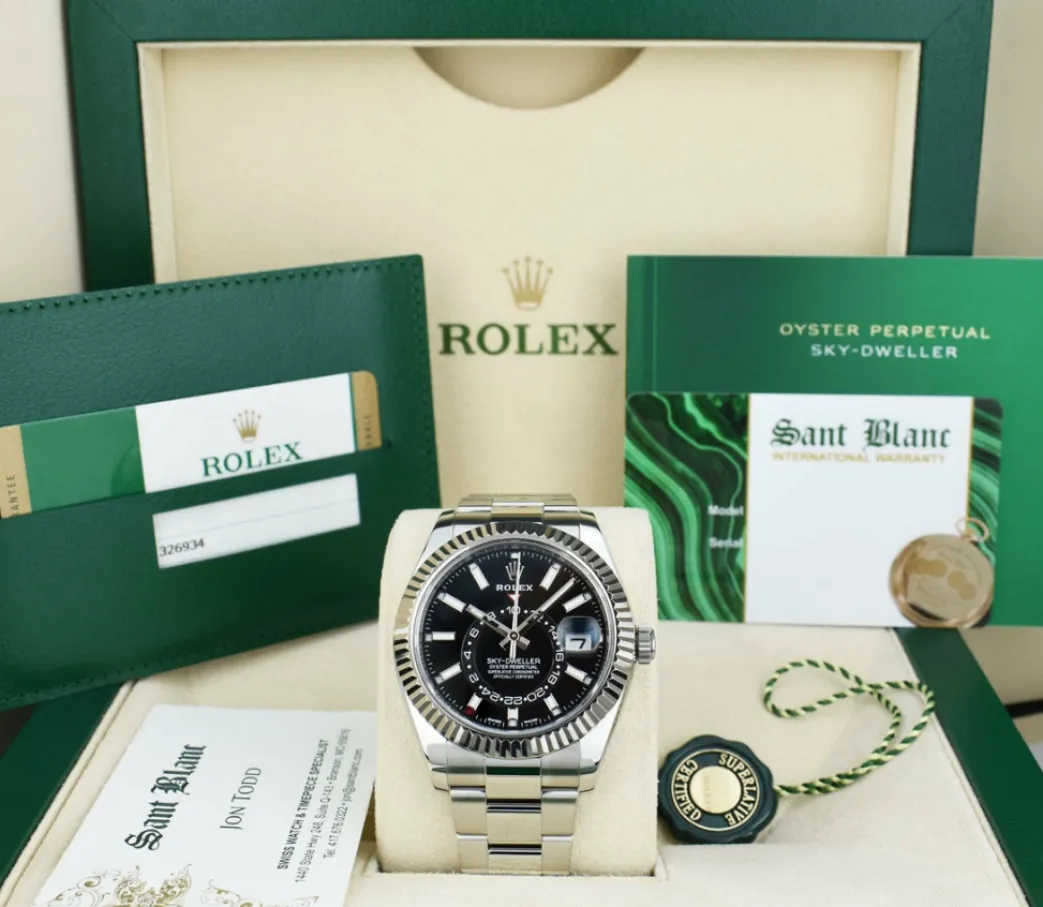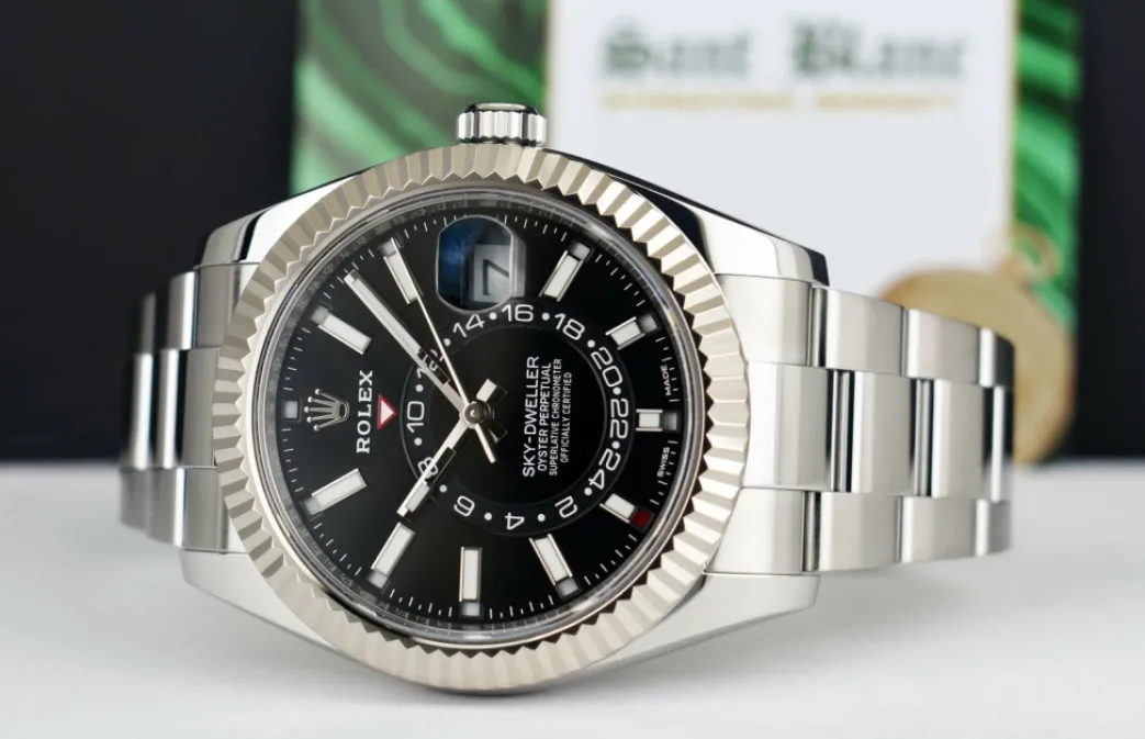 Absolutely Stunning brilliant Rolex Black Index Dial! This is the 42mm size 18kt White Gold & Stainless Steel Rolex Sky-Dweller model 326934: This is the style with the Rolex stainless steel bracelet.This Rolex is in pristine condition…Priced to sell immediately!