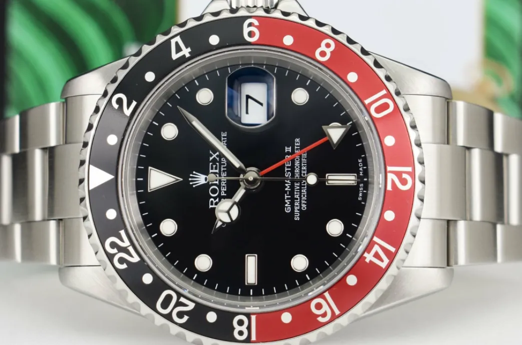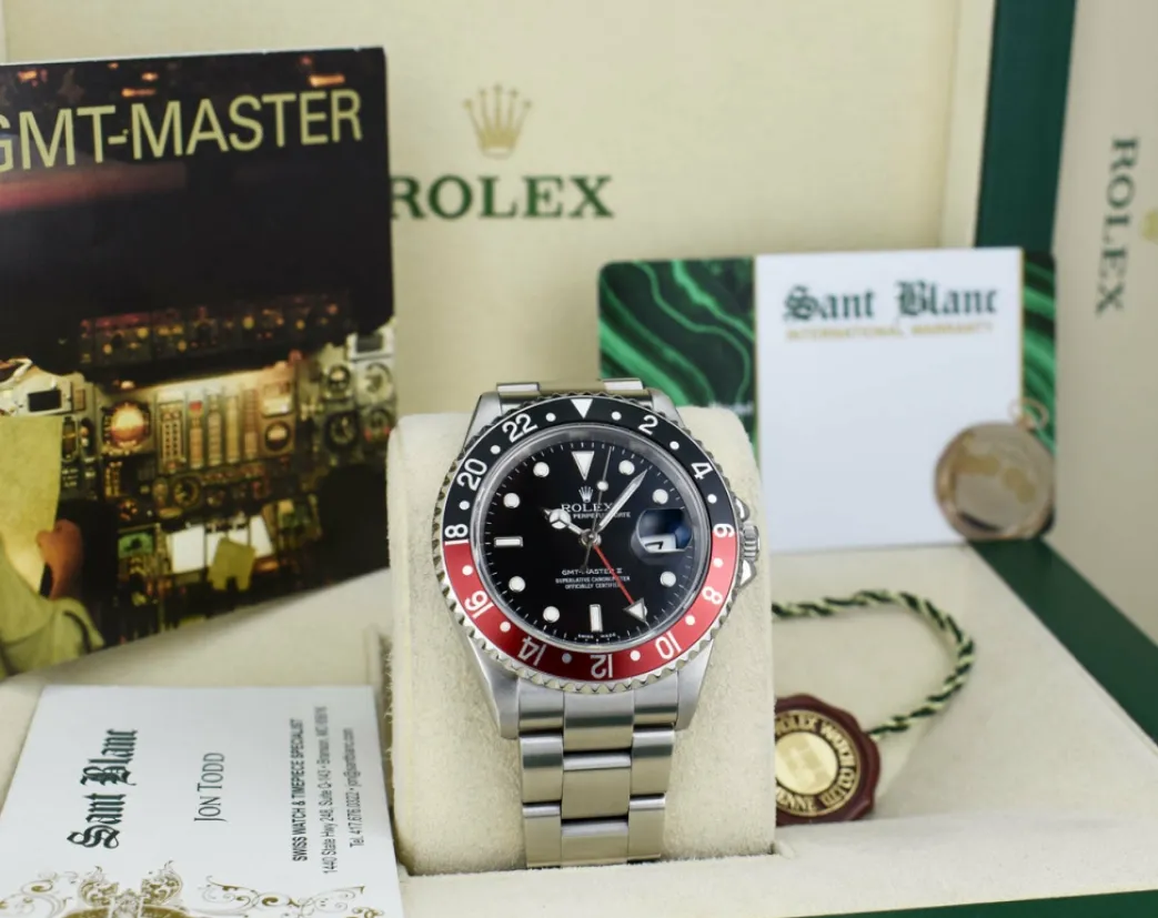 ROLEX GMT MAST II ! Absolutely Stunning brilliant Rolex Black Dial and Black & Red “Coke” Bezel! This is the 40mm size Stainless Steel Rolex GMT Master II model 16710: This is the style with the Rolex Stainless Steel bracelet. This Rolex is in pristine condition…Priced to sell immediately!