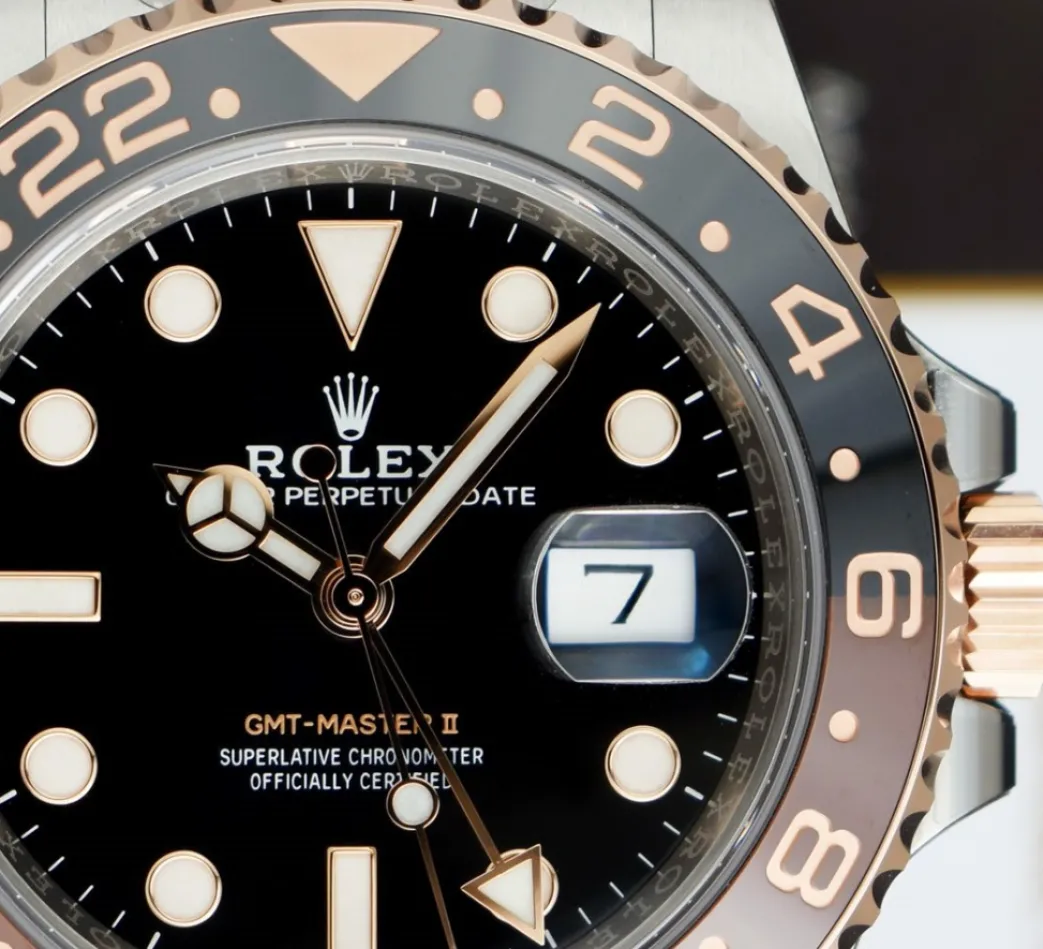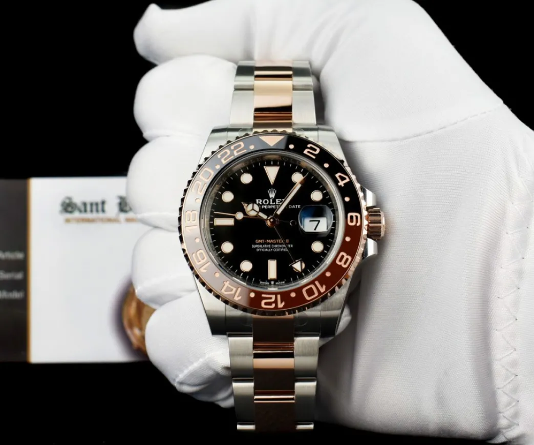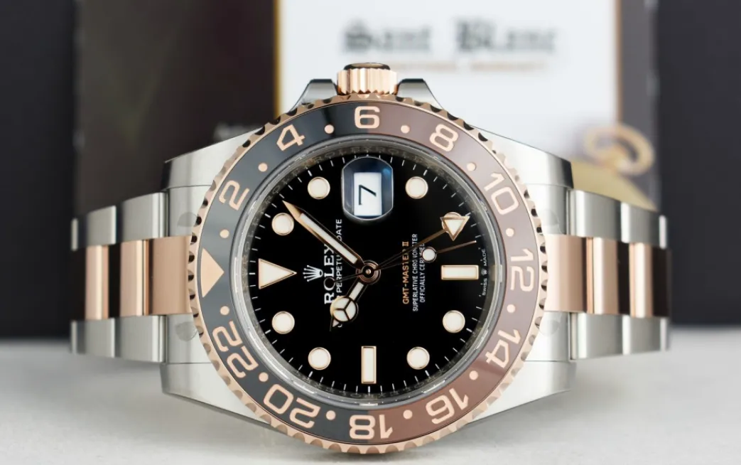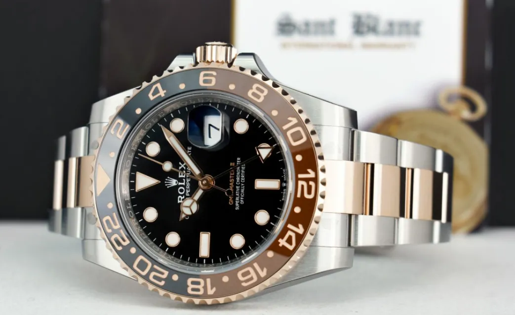 Pilots Professional Watches | Sant Blanc ROLEX Rose Gold & Stainless Steel GMT Master II Root Beer with Card Model 126711 CHNR
