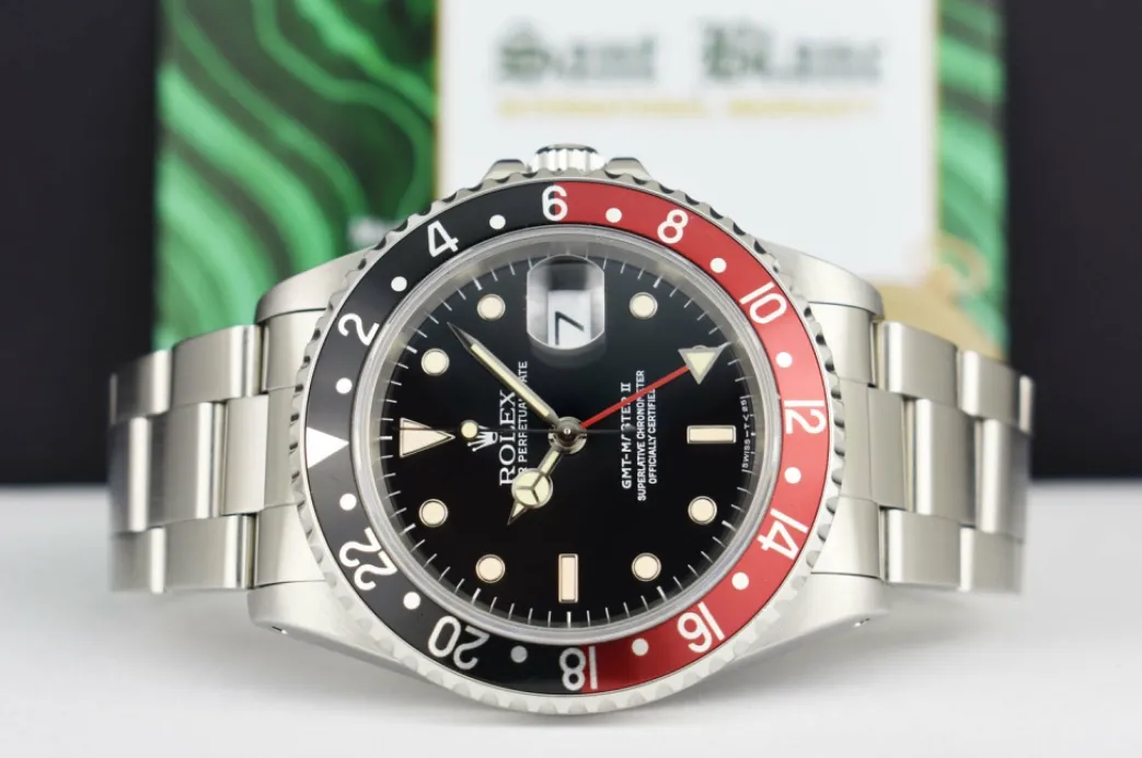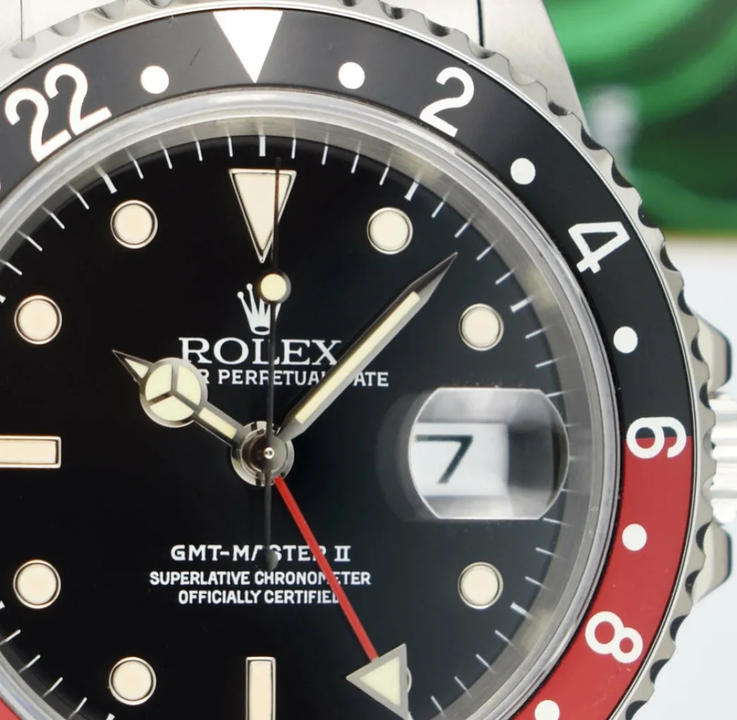 Absolutely Stunning brilliant & RARE Rolex Black & Cream Index Dial and Coke Bezel! This is the 40mm size Stainless Steel Rolex GMT Master II model 16710: This is the style with the Rolex Stainless Steel bracelet. This Rolex is in pristine condition…Priced to sell immediately!