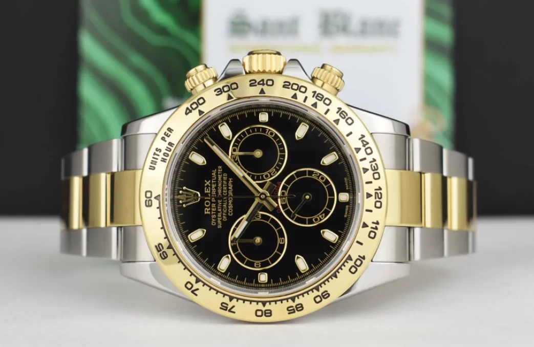 Absolutely Stunning brilliant Rolex Factory Black Index Dial! This is the 40mm size 18kt Yellow Gold & Stainless Steel Daytona model 116503: This is the style with the Rolex 18kt Yellow Gold & Stainless Steel bracelet. This Rolex is in pristine condition…Priced to sell immediately!