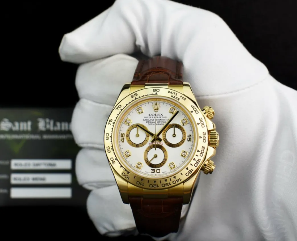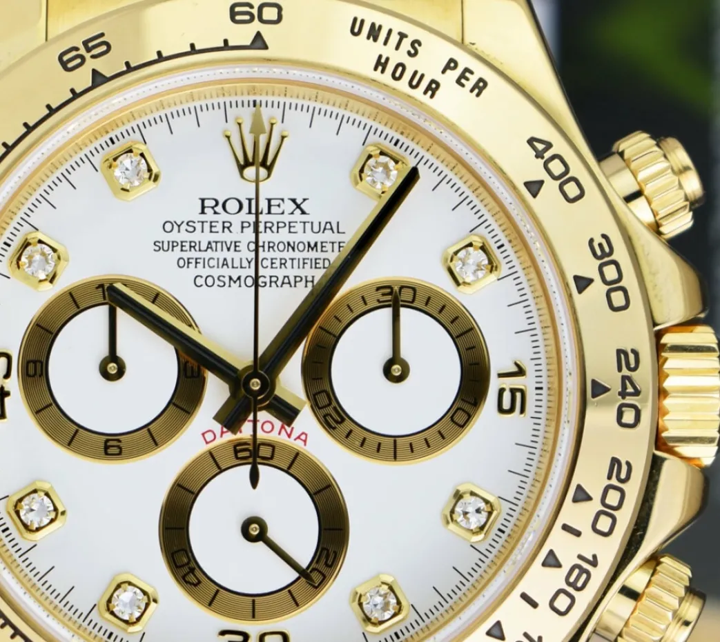 ROLEX REHAUT – This Daytona is a later model with Inner Bezel Engraving! Absolutely Stunning brilliant Rolex White Diamond Dial! This is the 40mm size Rolex Daytona model 116518: This is the style with the Rolex Crocodile Strap. This Rolex is in pristine condition…Priced to sell immediately!