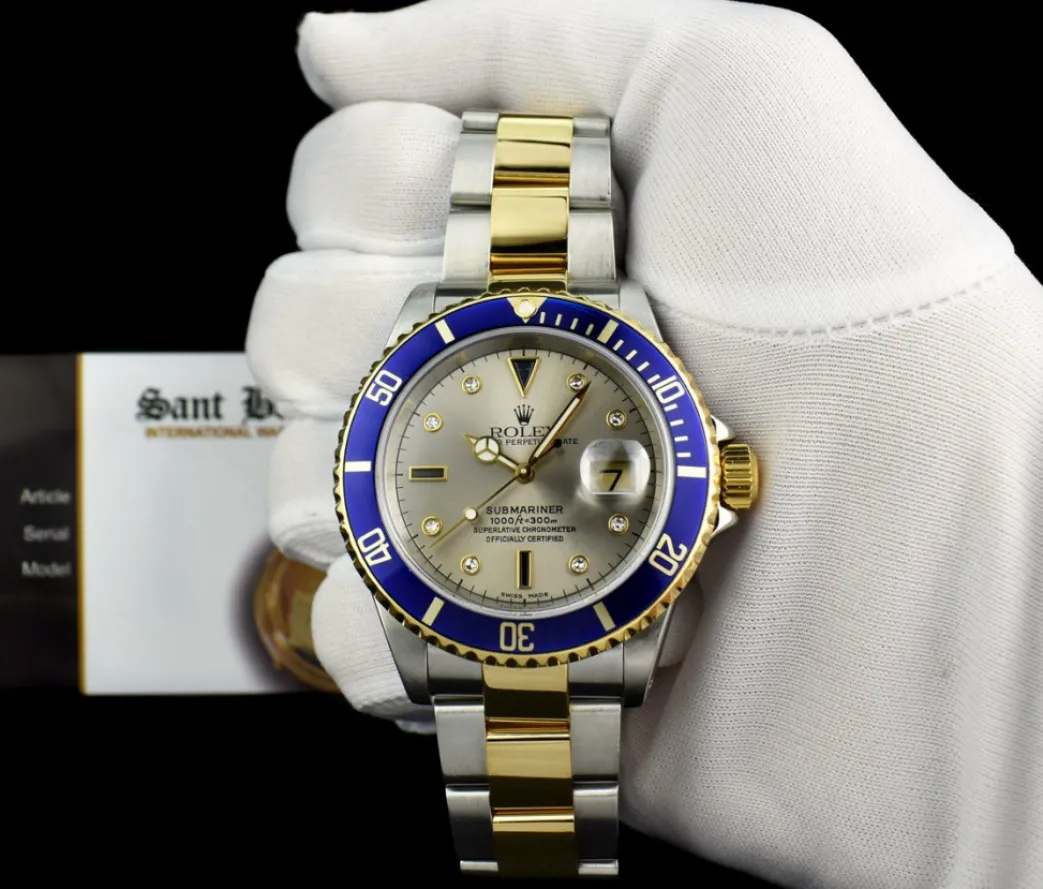 ROLEX SEL – This Submariner is a later model with Solid End Links (SEL)! Absolutely Stunning brilliant Rolex Silver Diamond & Sapphire Serti Dial! This is the 40mm size 18kt Gold & Stainless Steel Rolex Submariner model 16613: This is the with the Rolex 18kt Gold & Stainless bracelet. To replace this Rolex has an estimated MSRP of $16,800. This Rolex is in pristine condition…Priced to sell immediately!