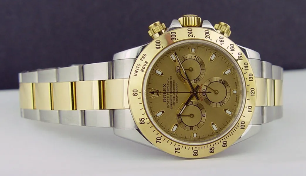 Absolutely Stunning brilliant Rolex Factory Champagne Index Dial! This is the 40mm size 18kt Gold & Stainless Steel Rolex Men’s Daytona – Rolex model 116523: This is the style with the Rolex 18kt Gold & Stainless bracelet. This Rolex is in pristine condition…Priced to sell immediately!