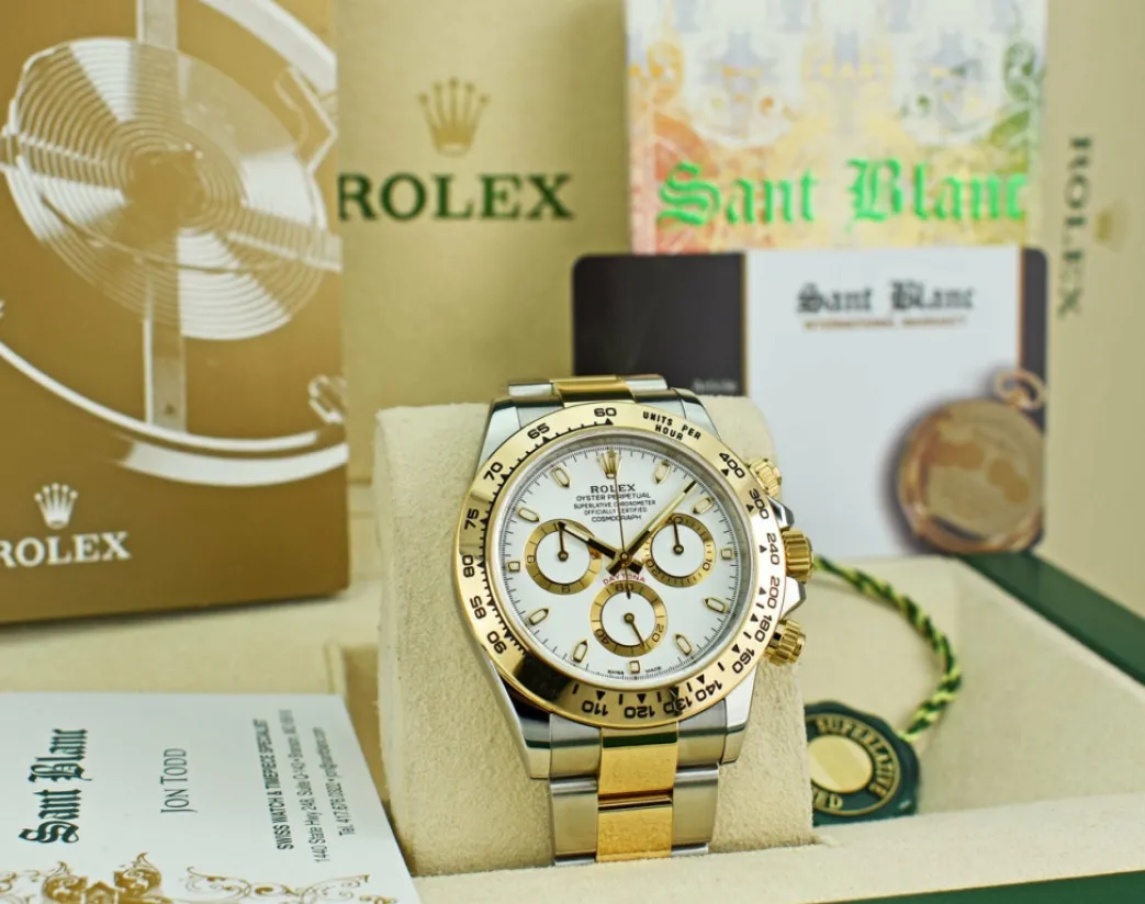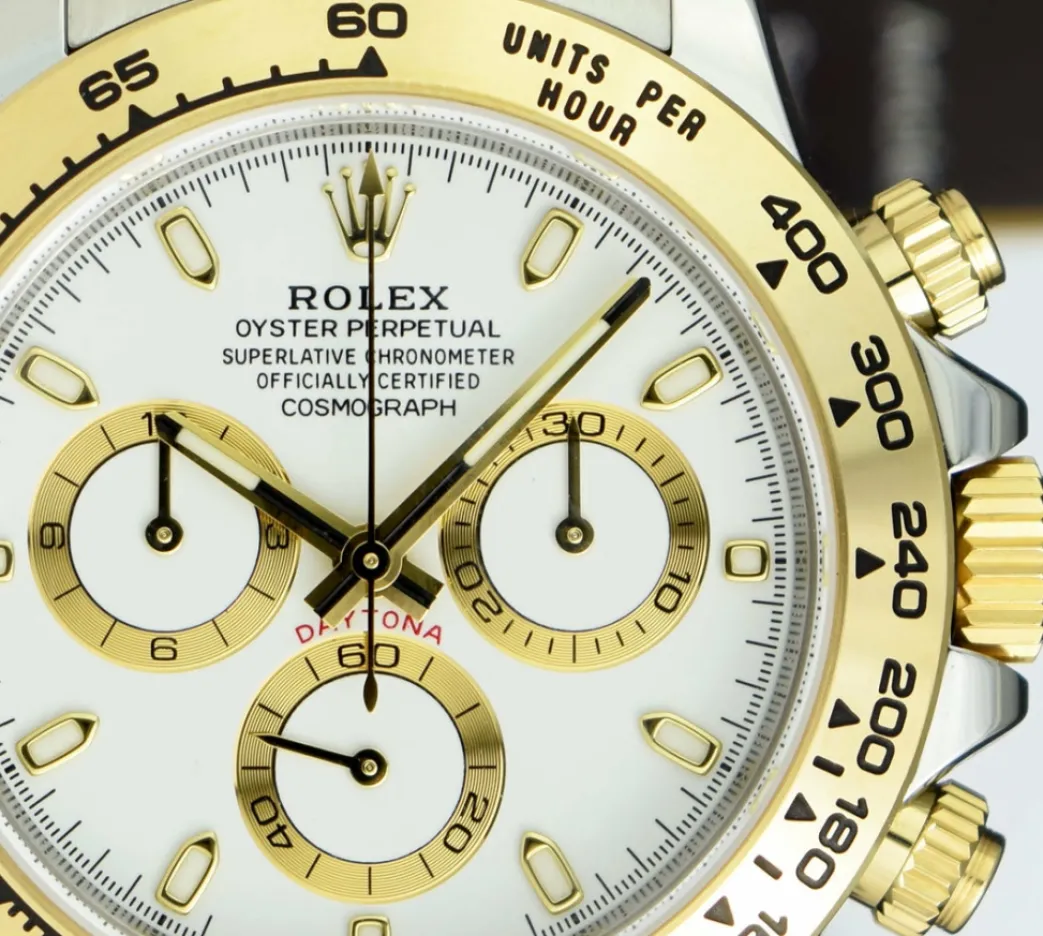 Absolutely Stunning brilliant Rolex Factory White Index Dial! This is the 40mm size Rolex Men’s 18kt Gold & Stainless Steel Daytona – Rolex Model 116503: This is the style with the Rolex 18kt Gold & Stainless bracelet. This Rolex is in pristine condition…Priced to sell immediately!