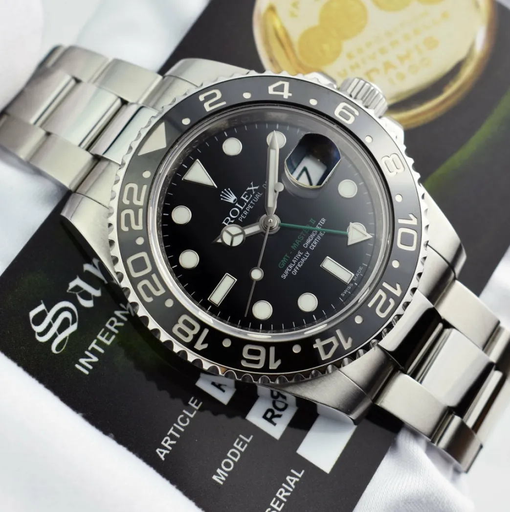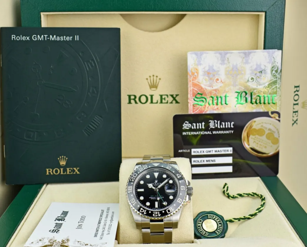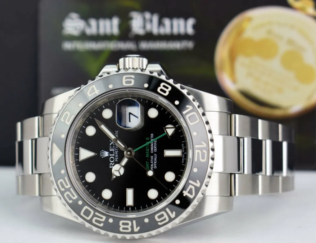 Absolutely Stunning brilliant Rolex Black Index Dial! This is the 40mm size Stainless Steel Rolex GMT Master II model 116710LN: This is the newest style with the Rolex Stainless Steel bracelet. This Rolex is in pristine condition…Priced to sell immediately!
