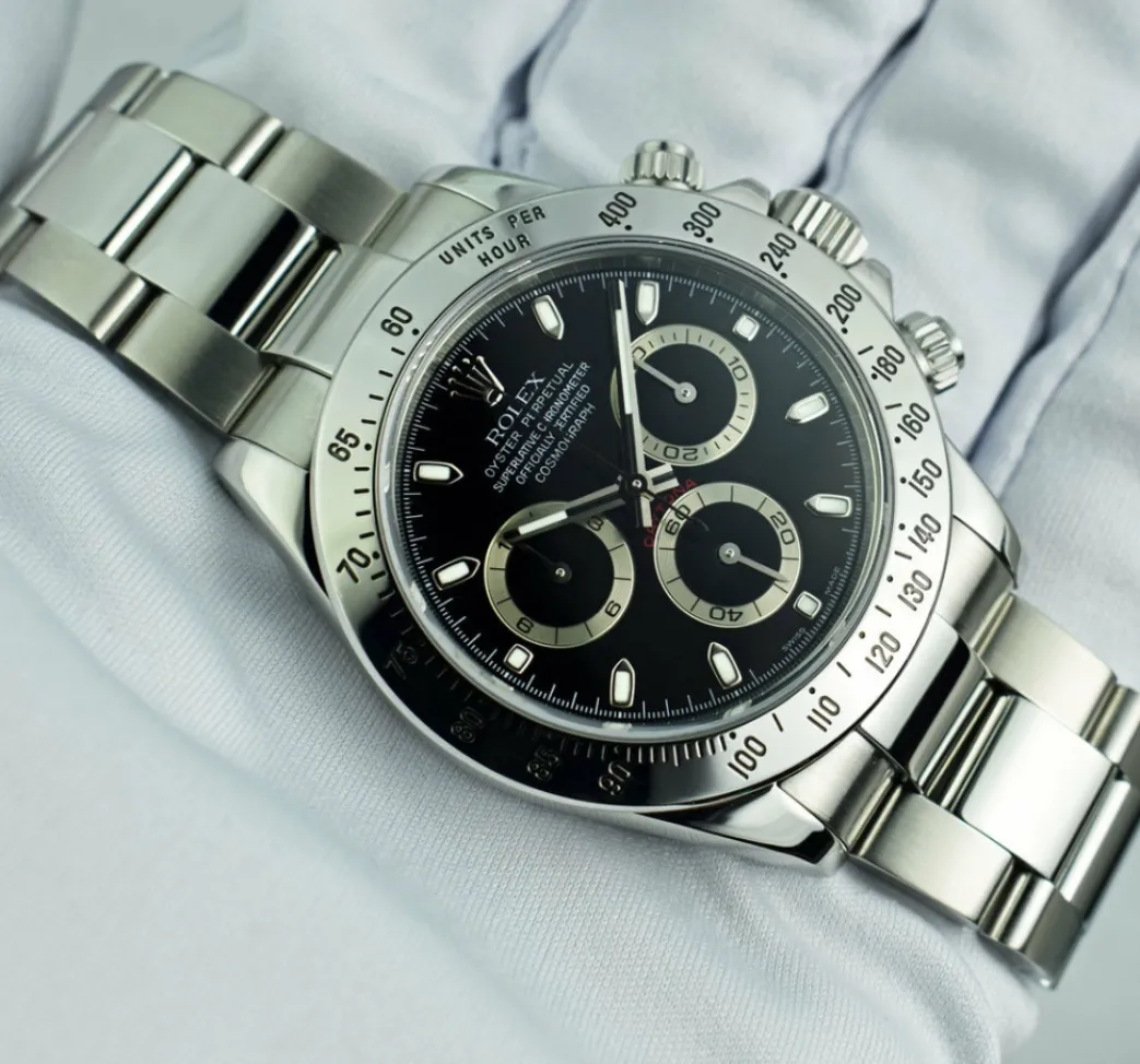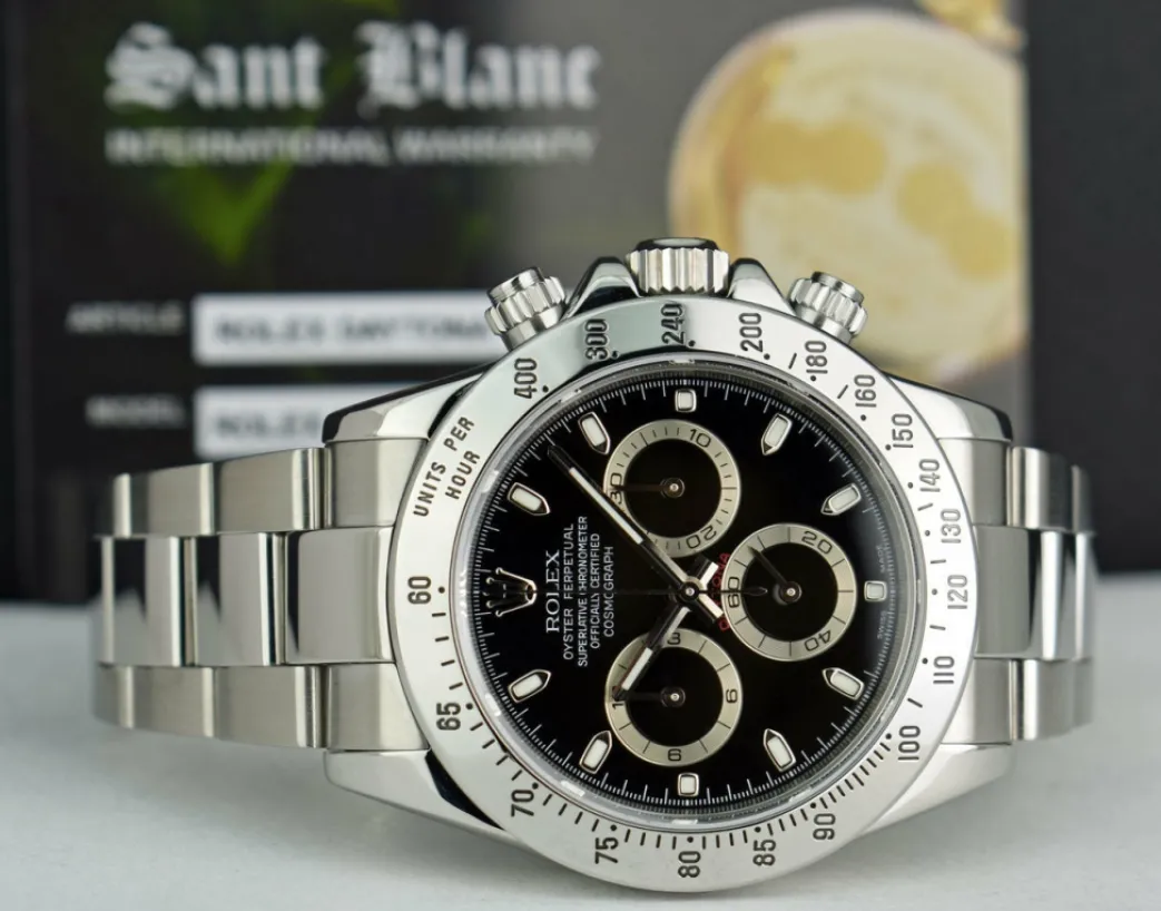 Absolutely Stunning brilliant Rolex Factory Black Index Dial! This is the 40mm size Stainless Steel Rolex Daytona model 116520: This is the style with the Rolex Stainless Steel bracelet. This Rolex is in pristine condition…Priced to sell immediately!
