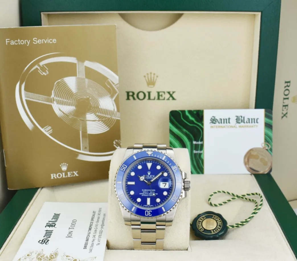 Absolutely Stunning brilliant Rolex Blue Dial and Blue Ceramic Bezel! This is the 40mm size 18kt White Gold Rolex Submariner model 116619LB: This is the style with the Rolex 18kt White Gold bracelet. This Rolex is in pristine condition…Priced to sell immediately!