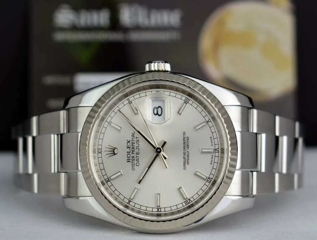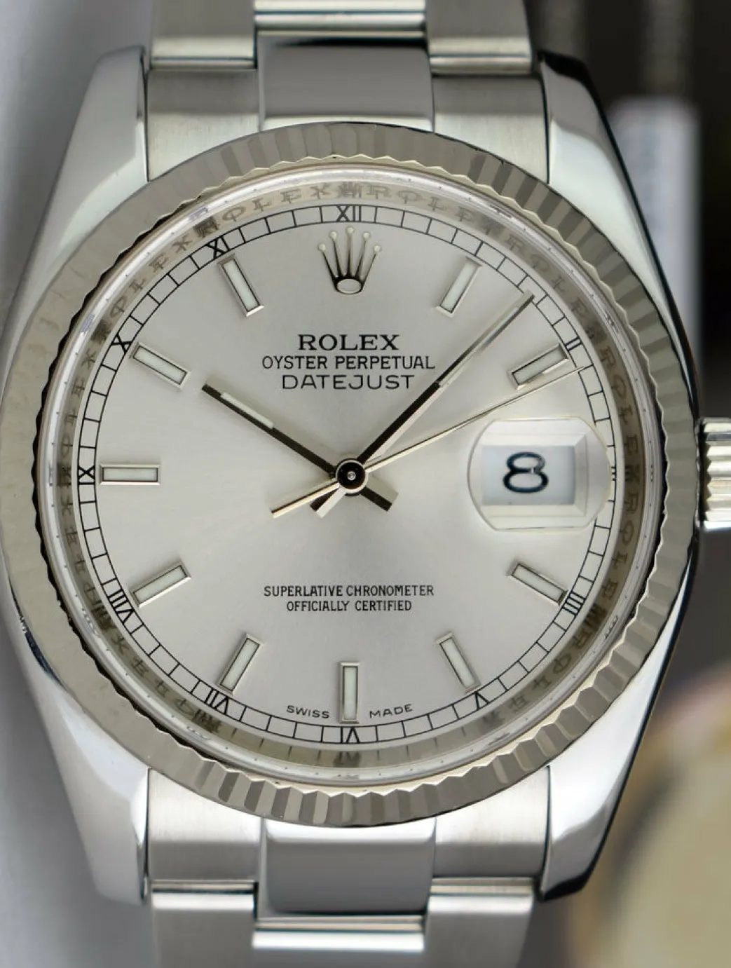 ROLEX REHAUT – This Datejust is a later model with inner bezel engraving! Absolutely Stunning brilliant Rolex Silver Index Dial! This is the 36mm size Rolex Datejust model 116234: This is the style with the Rolex Stainless Steel bracelet. This Rolex is in pristine condition…Priced to sell immediately!