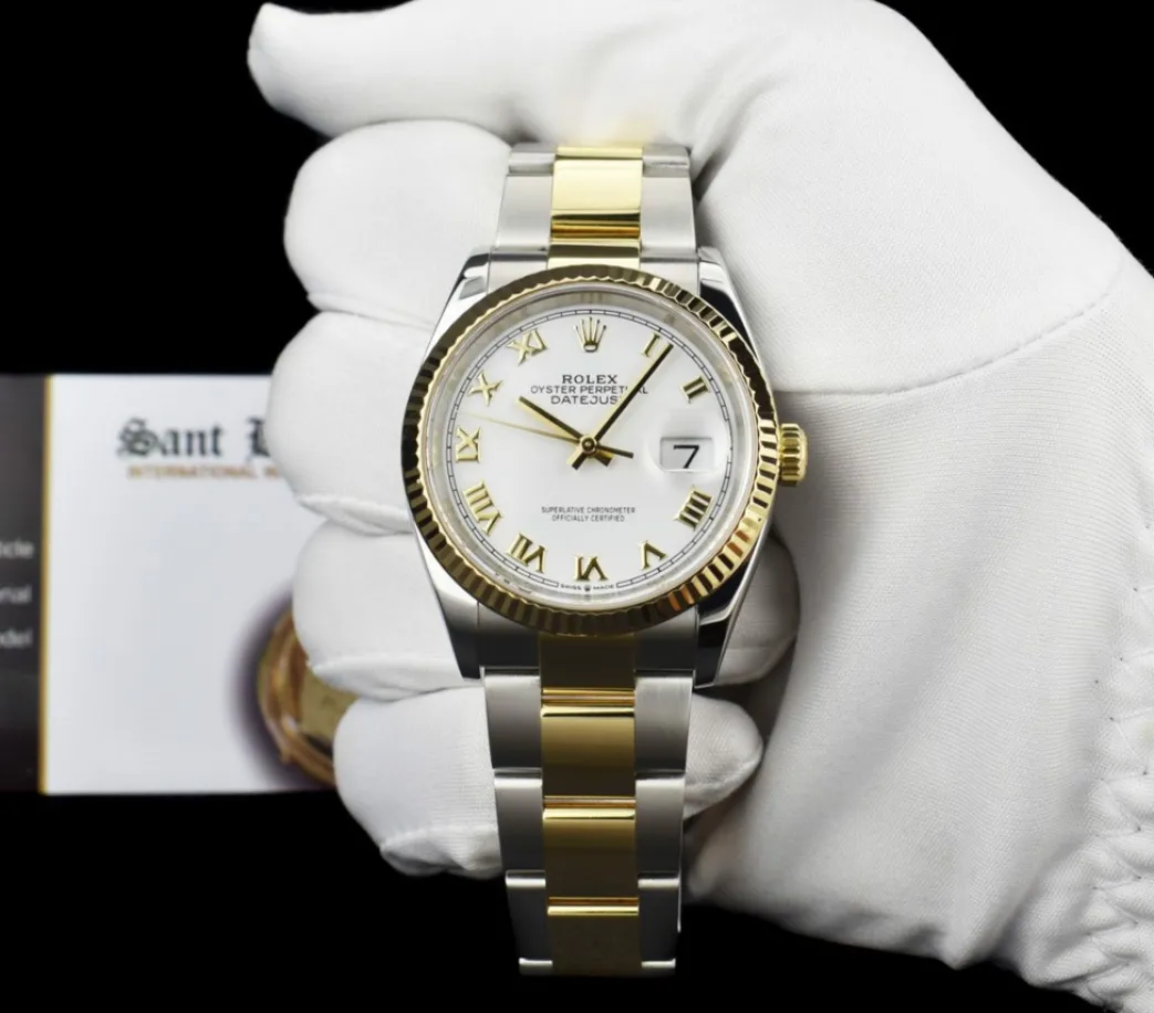 Dress Watches | Sant Blanc ROLEX 2020 18kt Gold & Stainless Steel Datejust 36 White Roman Box & Card Model 126233