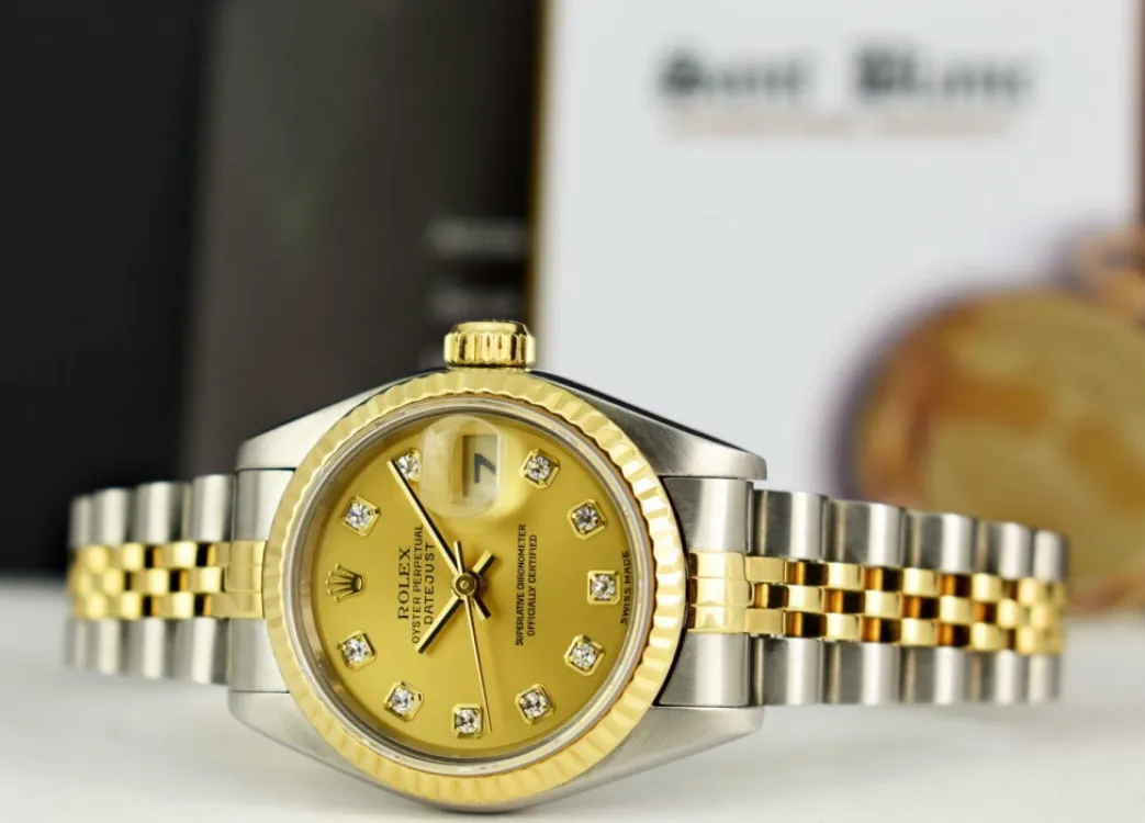 Absolutely Stunning brilliant Rolex Champagne Diamond Dial! This is the 26mm sixe 18kt Gold & Stainless Rolex Datejust model 69173: This is the style with Rolex 18kt Gold & Stainless bracelet. This Rolex is in pristine condition…Priced to sell immediately!