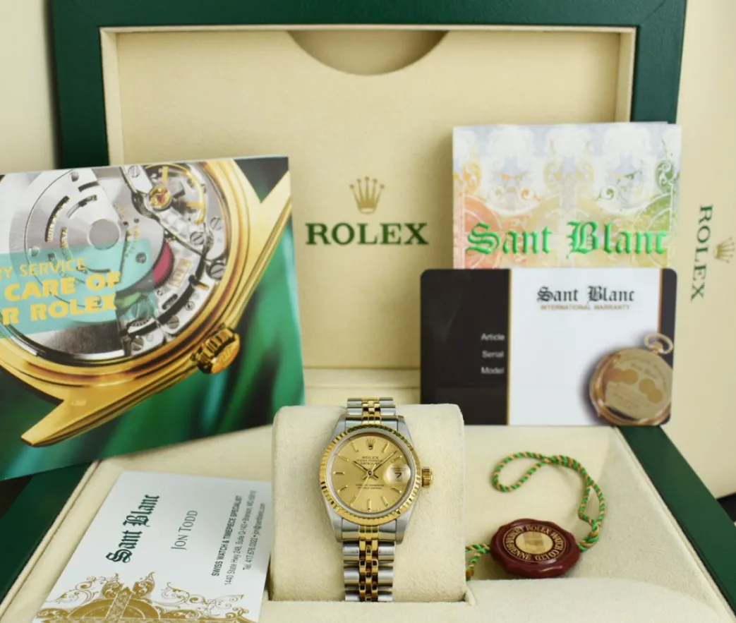 Ladies Watches | Dress Watches | Sant Blanc ROLEX Ladies 18kt Gold & Stainless Steel DateJust Champagne Stick Dial Model 69173