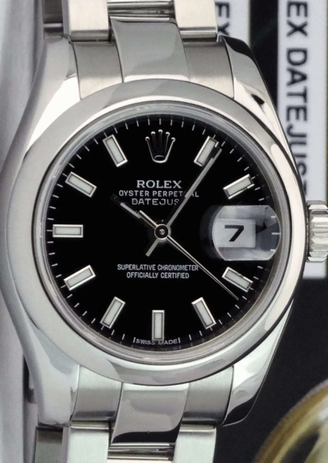 Absolutely Stunning brilliant Rolex Black Index Dial! This is the 26mm size Stainless Steel Rolex Datejust model 179160: This is the style with the Rolex Stainless Steel Oyster bracelet. This Rolex is in pristine condition…Priced to sell immediately!