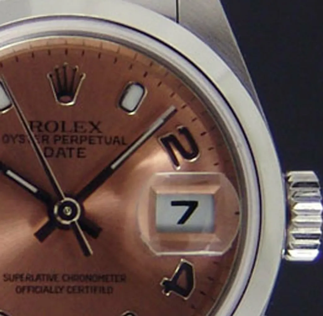 Absolutely Stunning brilliant Rolex Rose Arabic Dial! This is the Ladies 26mm size Stainless Steel Rolex Datejust model 79160: This is the style with the Rolex Stainless Oyster bracelet. This Rolex is in pristine condition…Priced to sell immediately!