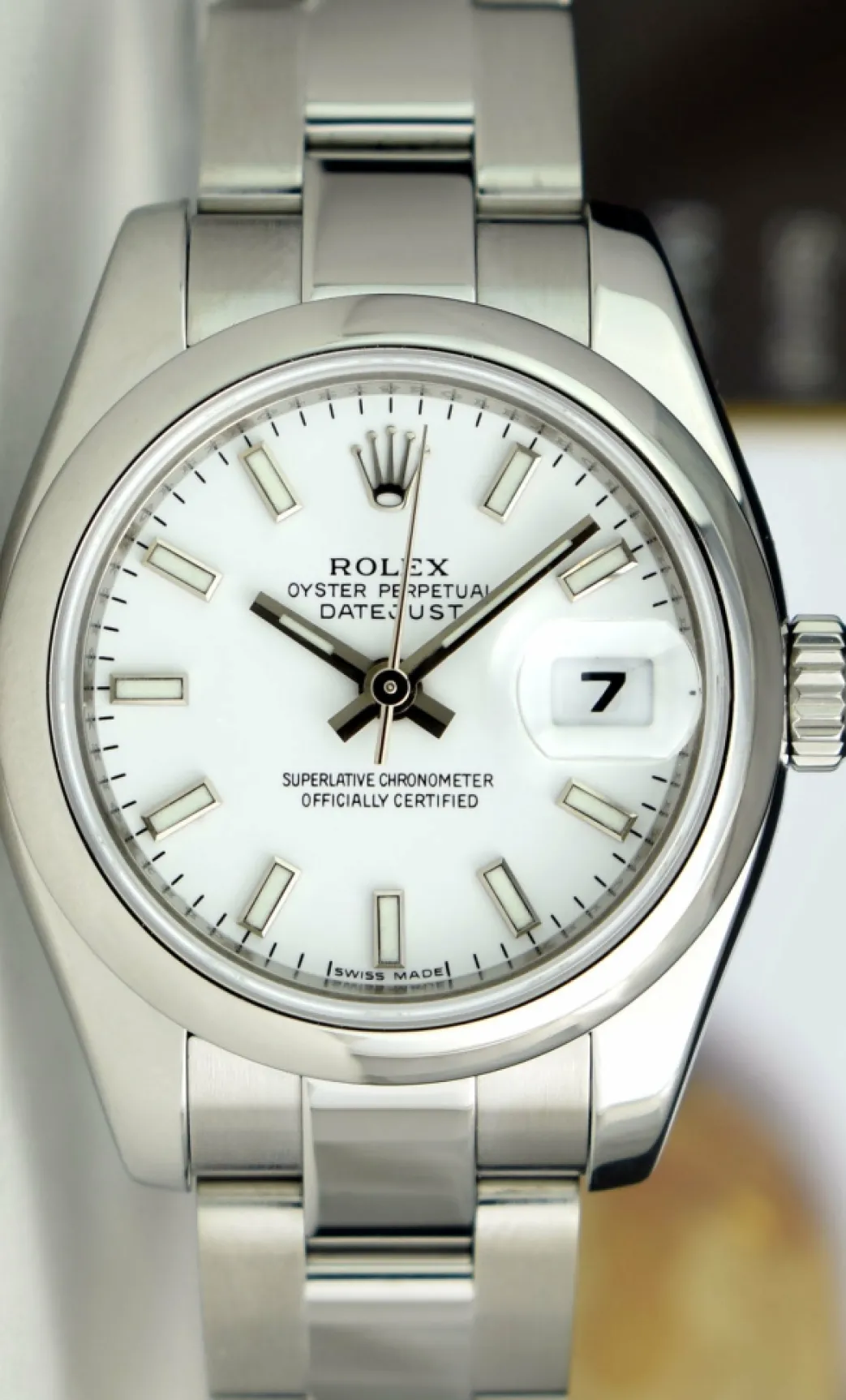 Absolutely Stunning brilliant Rolex White Index Dial! This is the Ladies 26mm size Stainless Steel Rolex Datejust model 179160: This is the style with the Rolex Stainless Steel Oyster bracelet. To replace this Rolex has an estimated MSRP of $6,100. This Rolex is in pristine condition…Priced to sell immediately!