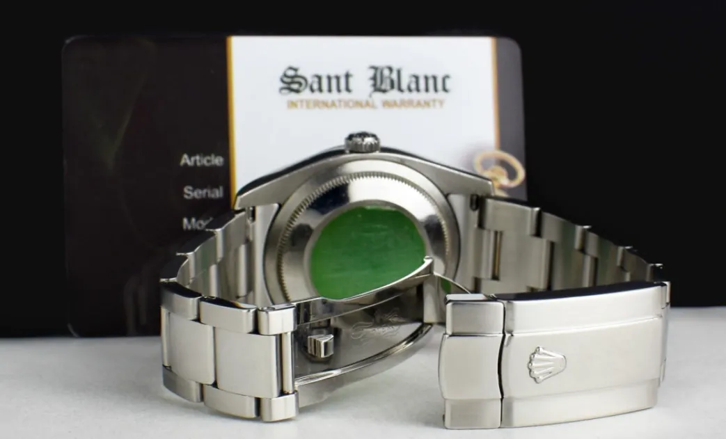 This Rolex is authentic and stunning. Unconditionally guaranteed to be authentic Rolex. Returns & exchanges accepted. Returns for refund are accepted. I have set the reserve well below the current value placed on this timepiece. SANT BLANC is a Swiss watch and timepiece specialist and not a Rolex dealer and have no affiliation with Rolex Watch USA. This Rolex timepiece is unconditionally guaranteed to be authentic. We are the sole warrantors of this timepiece. For questions please contact SANT BLANC – BRANSON MISSOURI – USA.