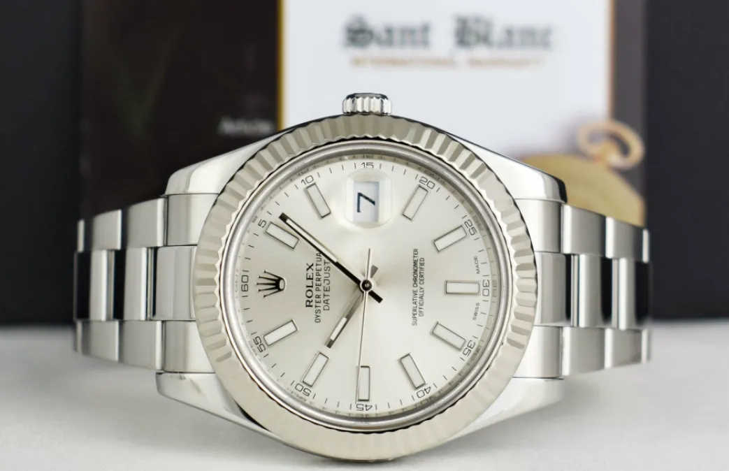 Absolutely Stunning brilliant Rolex Silver Index Dial! This is the 41mm size 18kt White Gold & Stainless Steel Rolex Datejust II model 116334: This is the style with the Rolex Stainless Steel Oyster bracelet. This Rolex is in pristine condition…Priced to sell immediately!