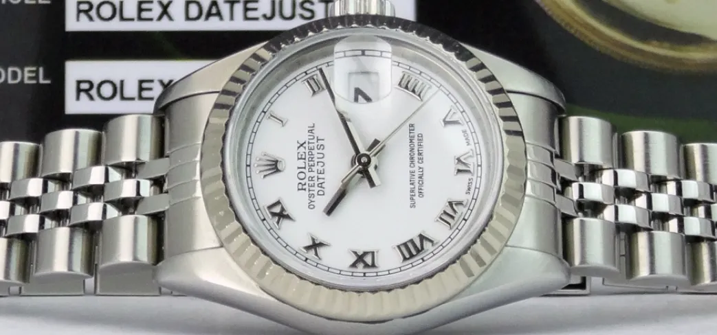 Absolutely Stunning brilliant Rolex White Roman Dial! This is the Ladies 26mm Rolex Datejust model 79174: This is the style with the Rolex Stainless Steel bracelet. To replace this Rolex has an estimated MSRP of $7,250. This Rolex is in pristine condition…Priced to sell immediately!
