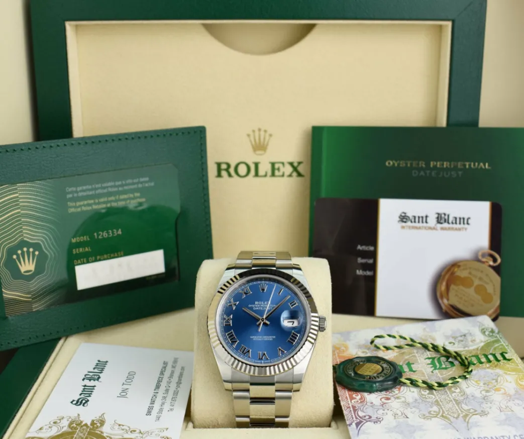 2021 NEVER WORN ROLEX – Comes with Original Rolex Box, Books, and Factory Rolex Card! Absolutely Stunning brilliant Rolex Blue Roman Dial! This is the 41mm Rolex Datejust 41 model 126334: This is the style with the Rolex Stainless Steel Oyster bracelet. To replace this Rolex has an estimated MSRP of $9,650. This Rolex is in pristine condition…Priced to sell immediately!