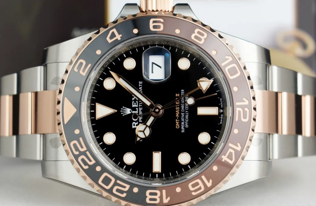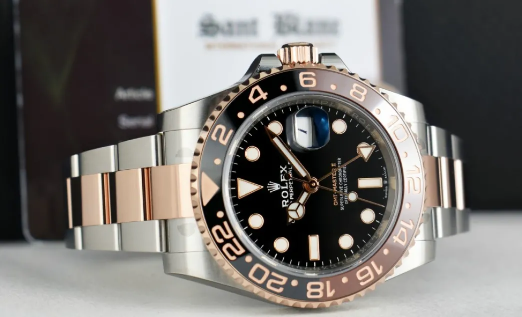 Pilots Professional Watches | Sant Blanc ROLEX Rose Gold & Stainless Steel GMT Master II Root Beer with Card Model 126711 CHNR
