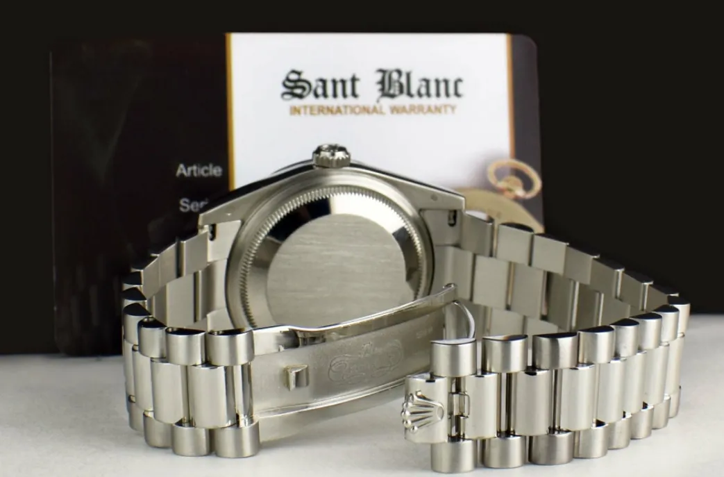 This Rolex is authentic and stunning. Unconditionally guaranteed to be authentic Rolex. Returns & exchanges accepted. Returns for refund are accepted. SANT BLANC is a Swiss watch and timepiece specialist and not a Rolex dealer and have no affiliation with Rolex Watch USA. This Rolex timepiece is unconditionally guaranteed to be authentic. We are the sole warrantors of this timepiece. For questions please contact SANT BLANC.