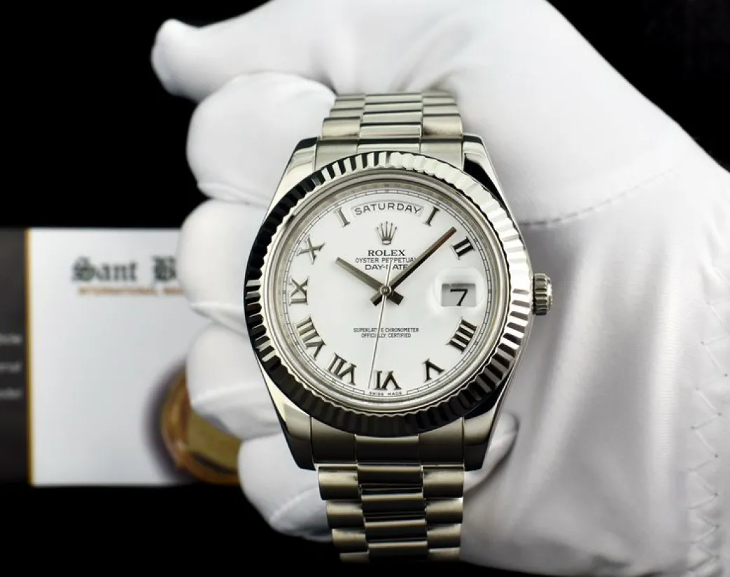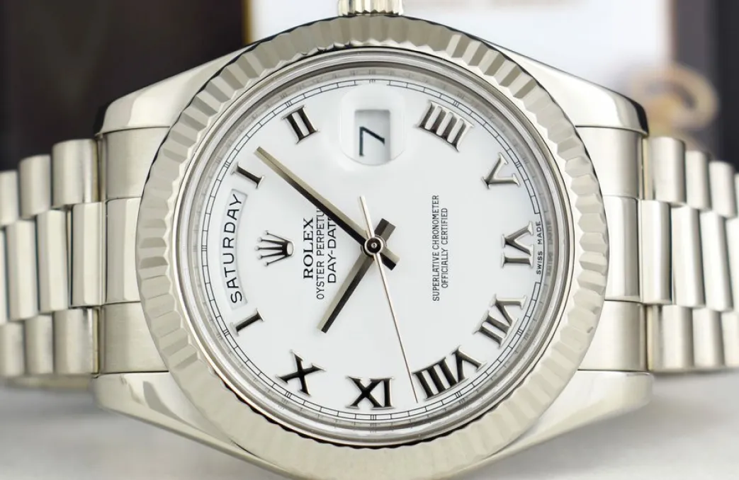 President Dress Watches | Sant Blanc ROLEX 41mm White Gold Day Date II President White Roman Model 218239