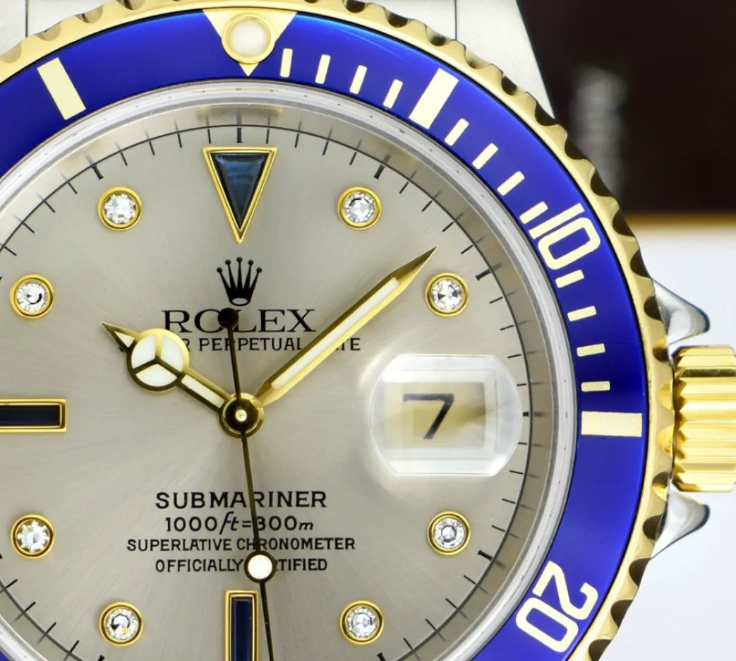 ROLEX SEL – This Submariner is a later model with Solid End Links (SEL)! Absolutely Stunning brilliant Rolex Silver Diamond & Sapphire Serti Dial! This is the 40mm size 18kt Gold & Stainless Steel Rolex Submariner model 16613: This is the with the Rolex 18kt Gold & Stainless bracelet. To replace this Rolex has an estimated MSRP of $16,800. This Rolex is in pristine condition…Priced to sell immediately!